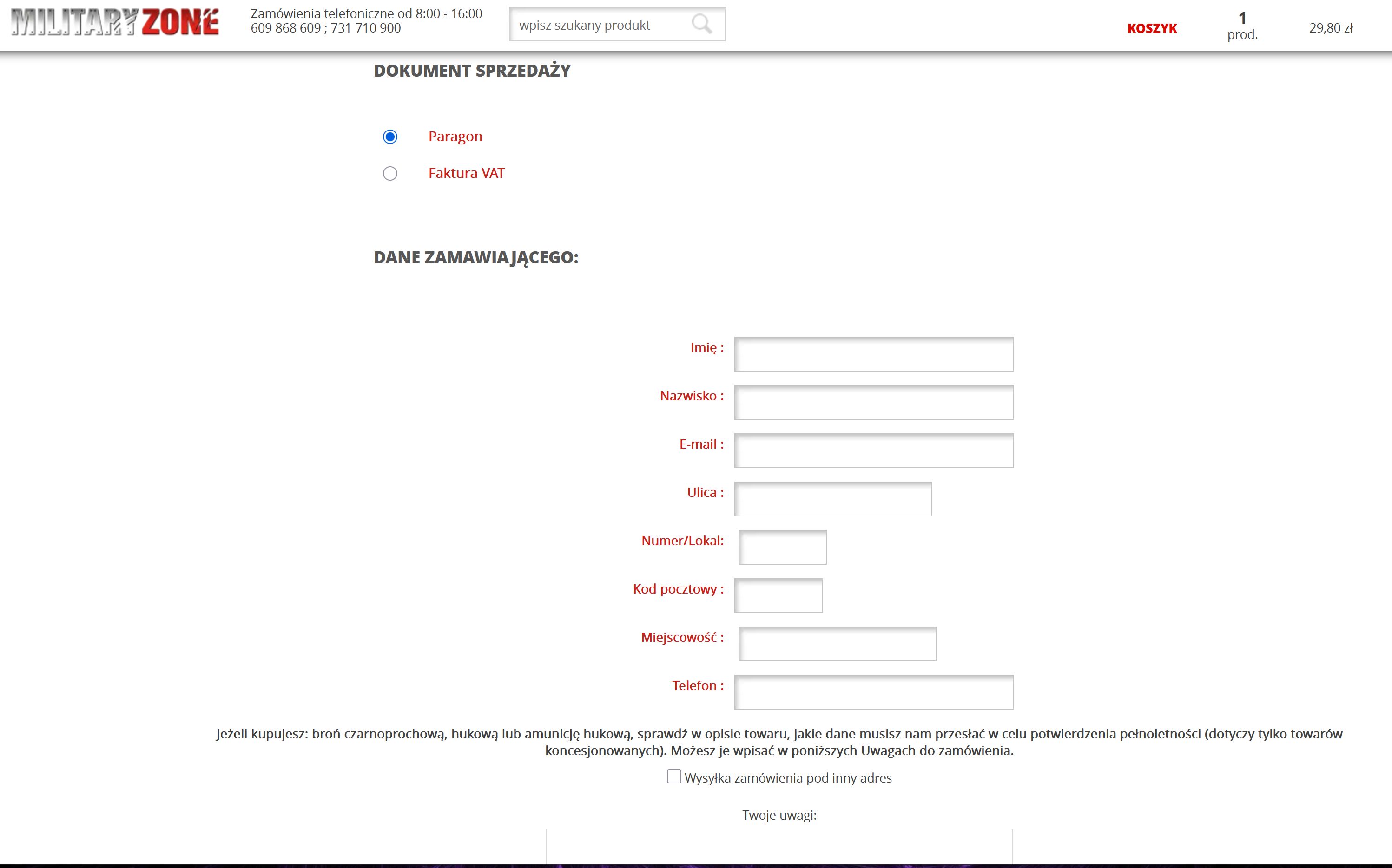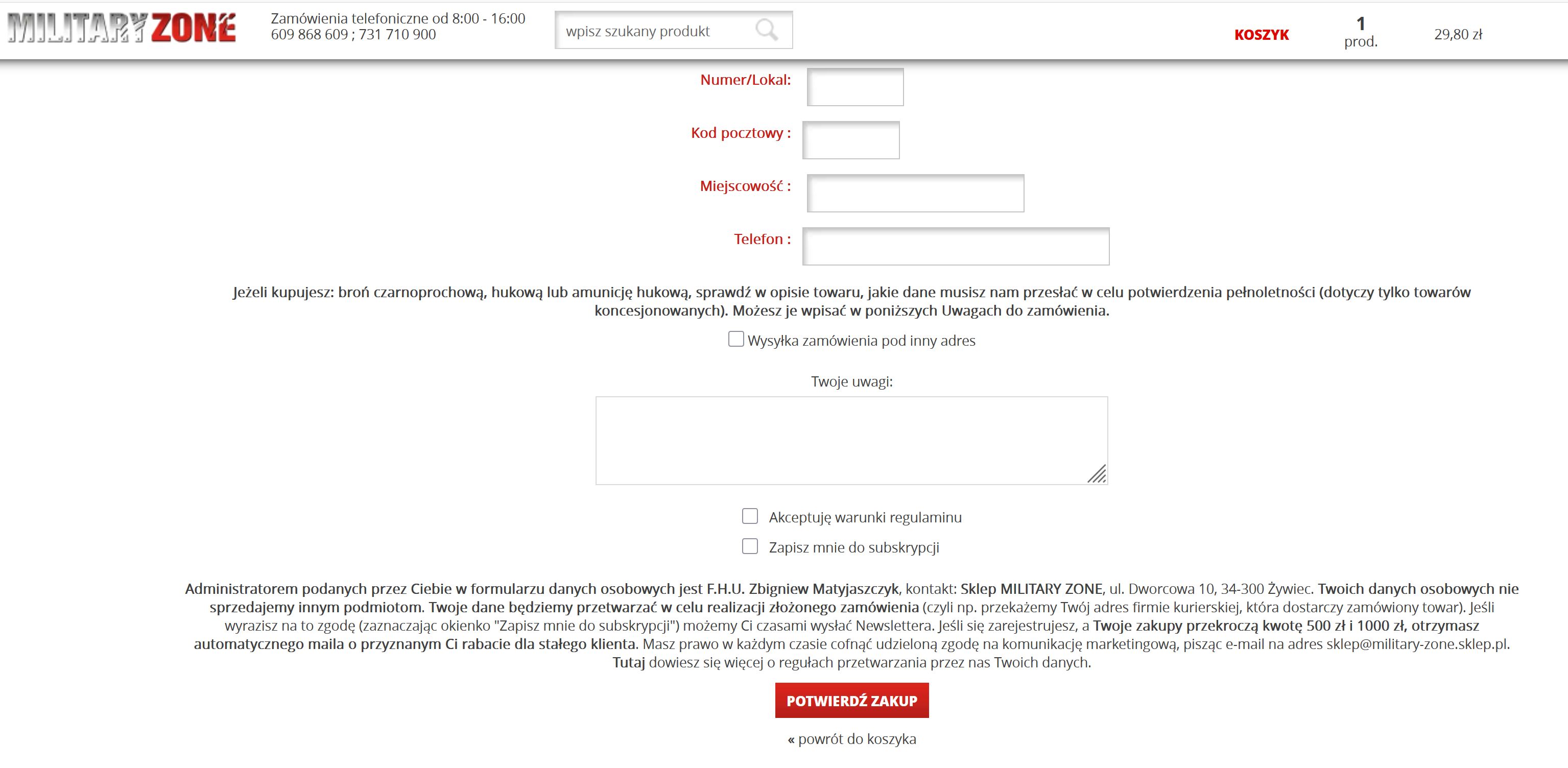 Instrukcja zamawiania produktów w sklepie military-zone.sklep.pl