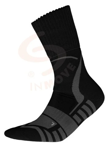 Konstrukcja i wykończenie: | Miękkie trówarstwowe profilowane frotte amortyzuje wstrząsy i chroni wrażliwe części stopy oraz kostki przed otarciami i urazami. Wykorzystanie nowoczesnej konstrukcji przędzy Prolen®SILTEX oraz specjalnych stref wentylacji sprawia, że wilgoć jest szybko odprowadzana do warstw oddalonych od skóry, zaś stopy pozostają zawsze suche. W przypadku zamoczenia skarpetek, czas ich schnięcia jest znacznie krótszy, niż skarpetek bawełnianych, co ma duże znaczenie przy użytkowaniu w ekstremalnych warunkach. Skarpetki są dostosowane do anatomicznego kształtu lewej (L) i prawej (R) stopy przez odpowiednie wyprofilowanie frotte i ukształtowanie innego konturu dzianiny wokół palców lewej i prawej stopy. Prawie zupełny brak ucisku przy jednoczesnym doskonałym utrzymywaniu się na nodze zapewnia nowoczesne włókno LYCRA®, zastosowane w całej skarpetce. Dłuższa bezuciskowa cholewka o specjalnej konstrukcji umożliwia jej wywijanie na but. Opaska elastyczna na śródstopiu zabezpiecza przed przesuwaniem się skarpetki na stopie nawet podczas gwałtownych ruchów. Odpowiednio wyprofilowana dzianina na pięcie (kształt "Y"), doskonale przylega do stopy i stabilizuje ją. Poprzeczne prążki ułatwiają układanie się skarpetki na zgięciu nogi. Zastosowanie unikalnej technologii łączenia skarpet nad palcami "PATENT ROSSO" sprawia, że jest ono niewyczuwalne i zapewnia najwyższy komfort. Zawartość jonów srebra w przędzy PROLEN®Siltex powoduje, że skarpetki pełnią rolę dezodorantu. Unikalne antybakteryjne i antygrzybicze działanie jonów srebra zapobiega powstawaniu przykrego zapachu podczas użytkowania i zapewnia maksymalną higienę. |