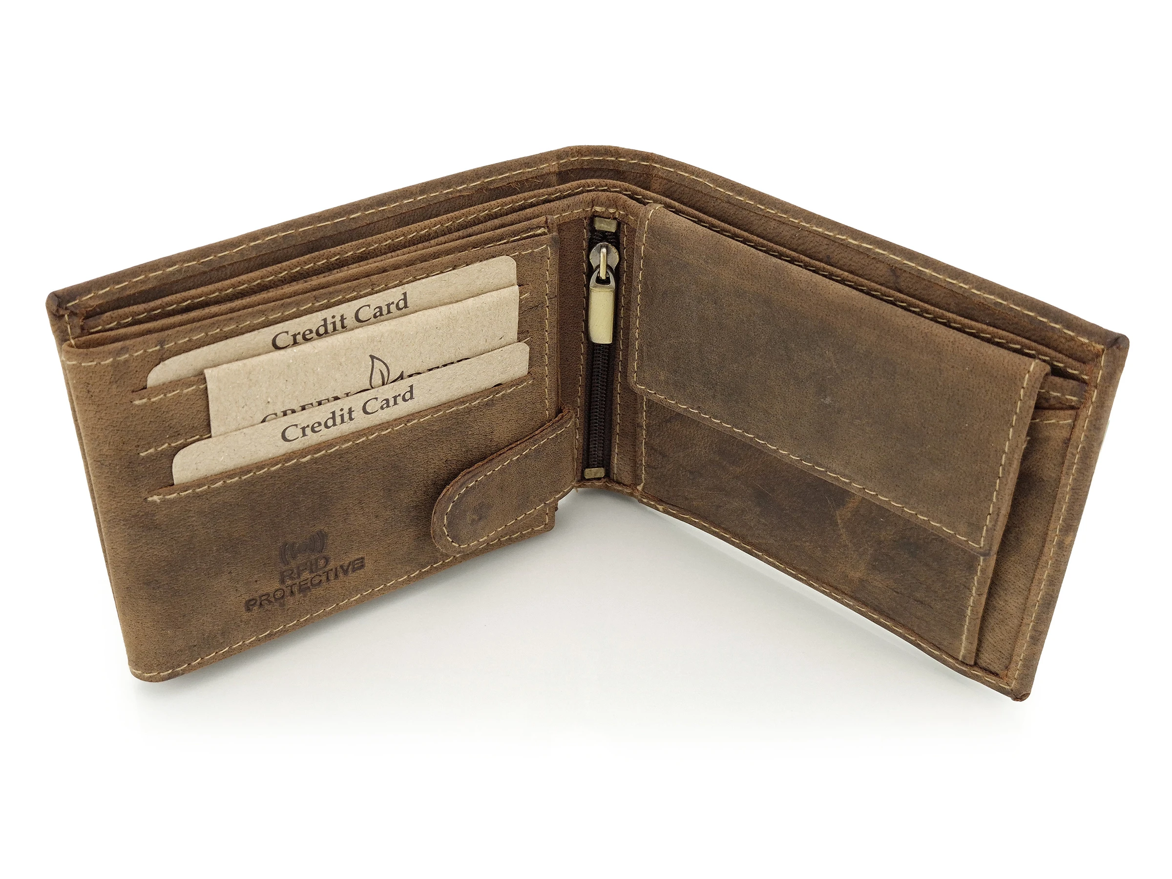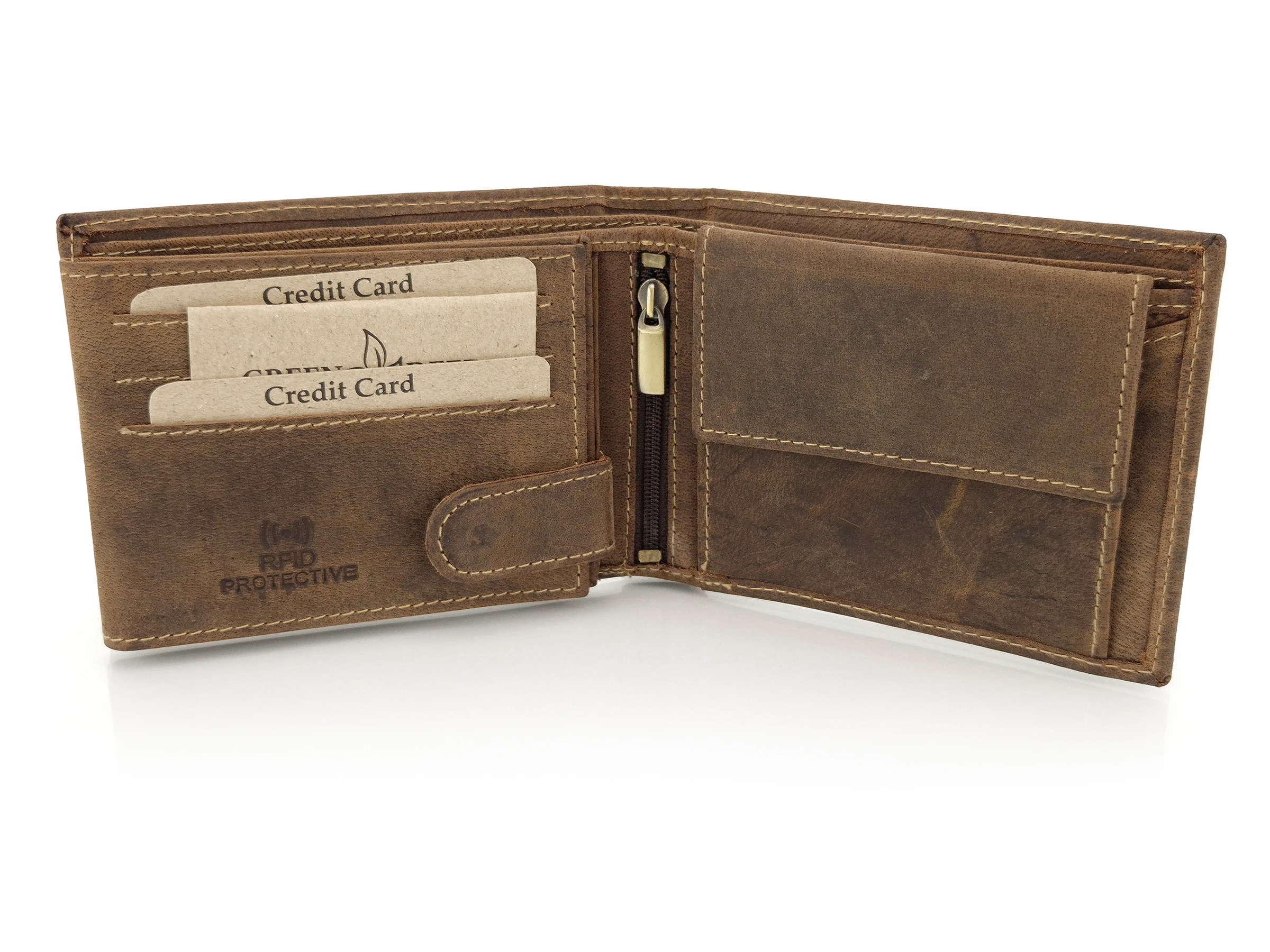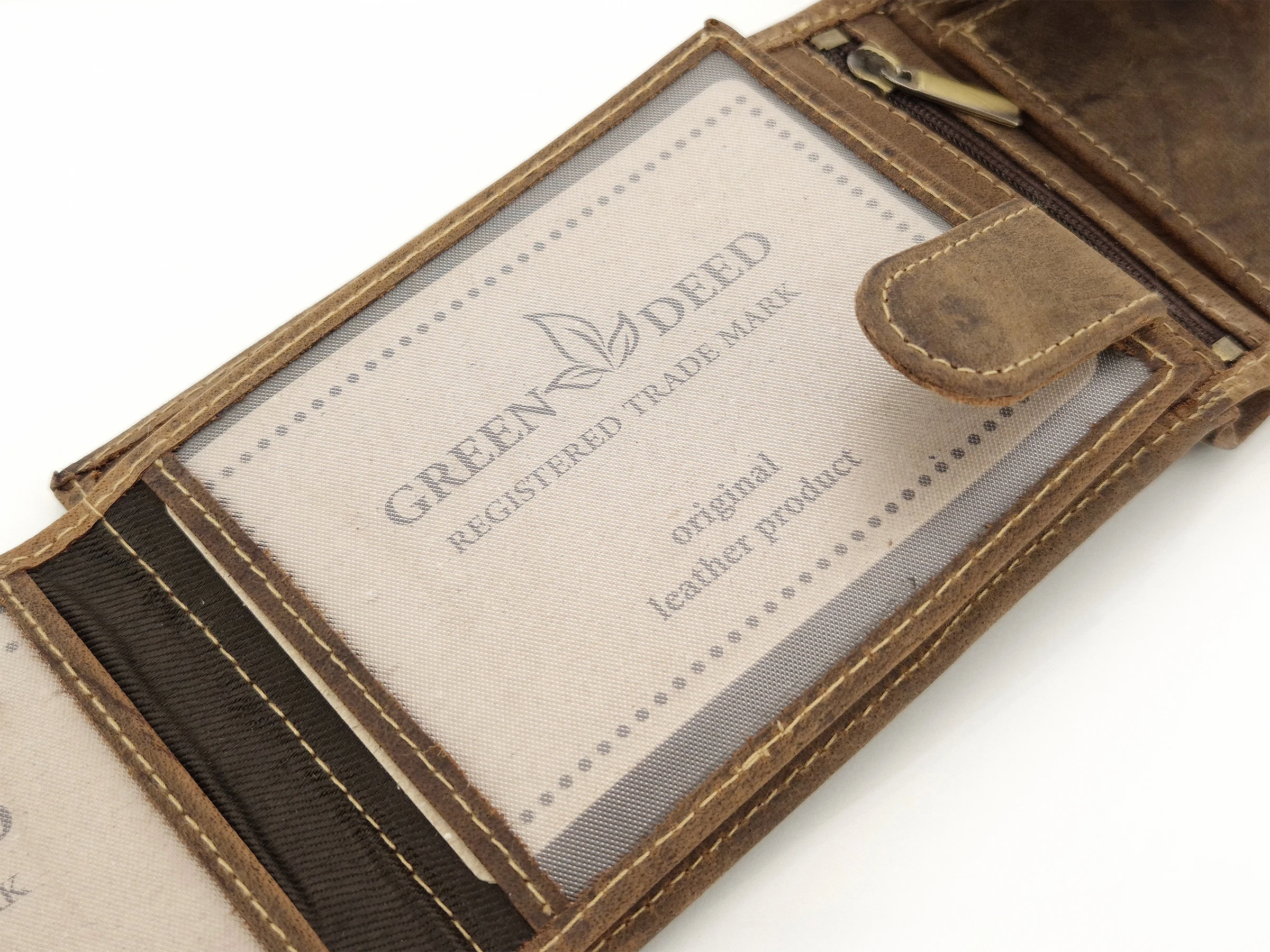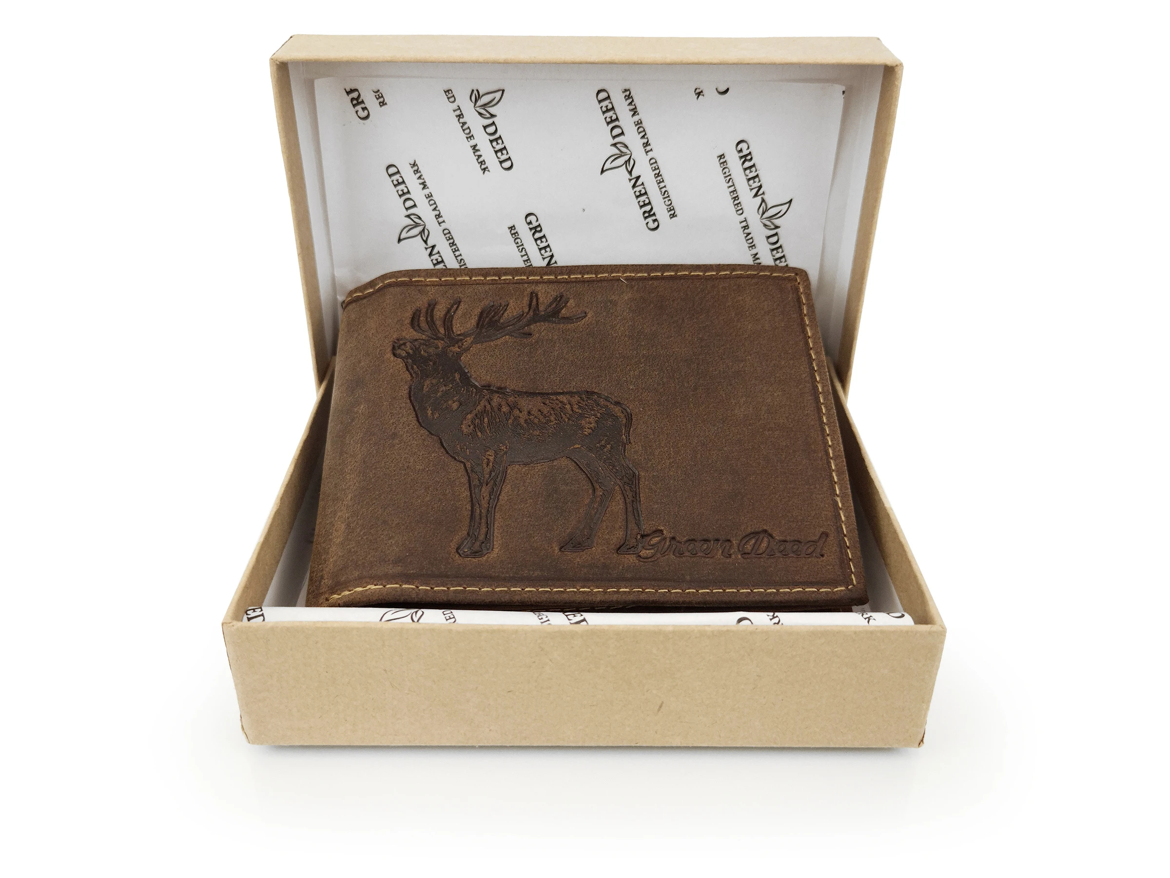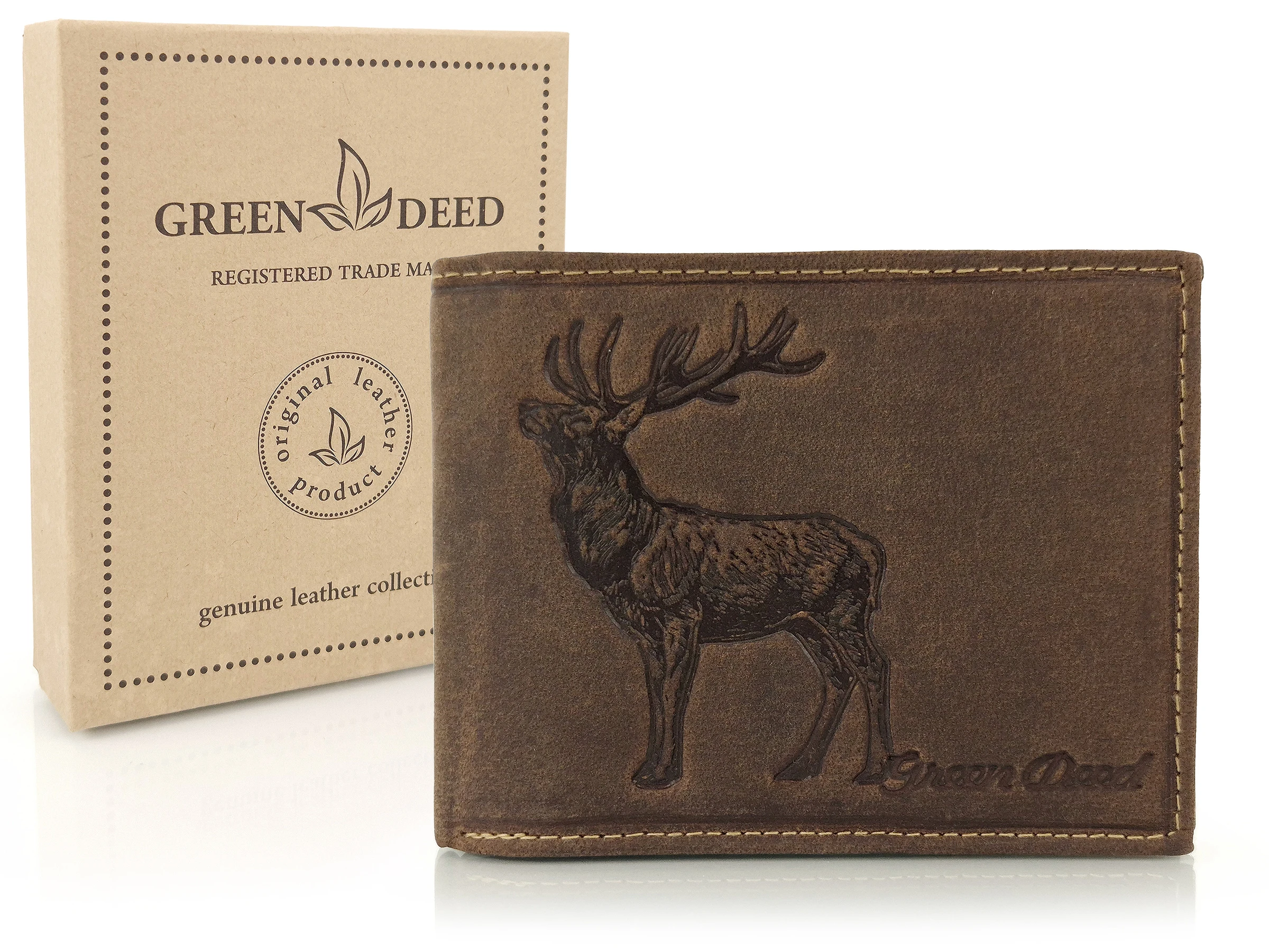 Skórzany portfel myśliwski Green Deed ciemny brąz - Jeleń / RFID