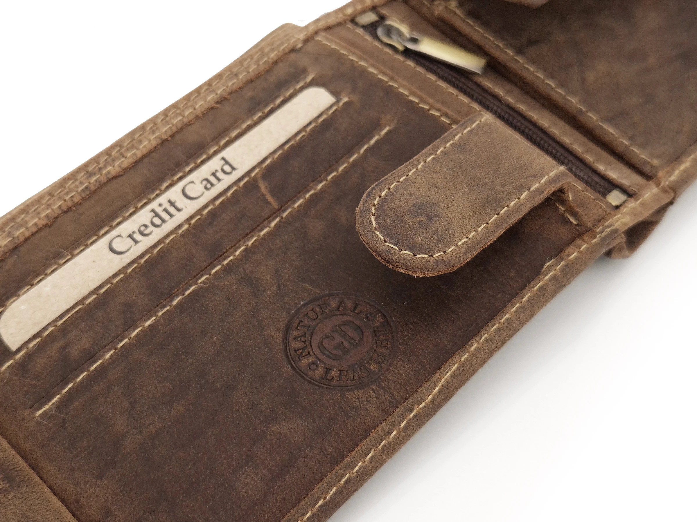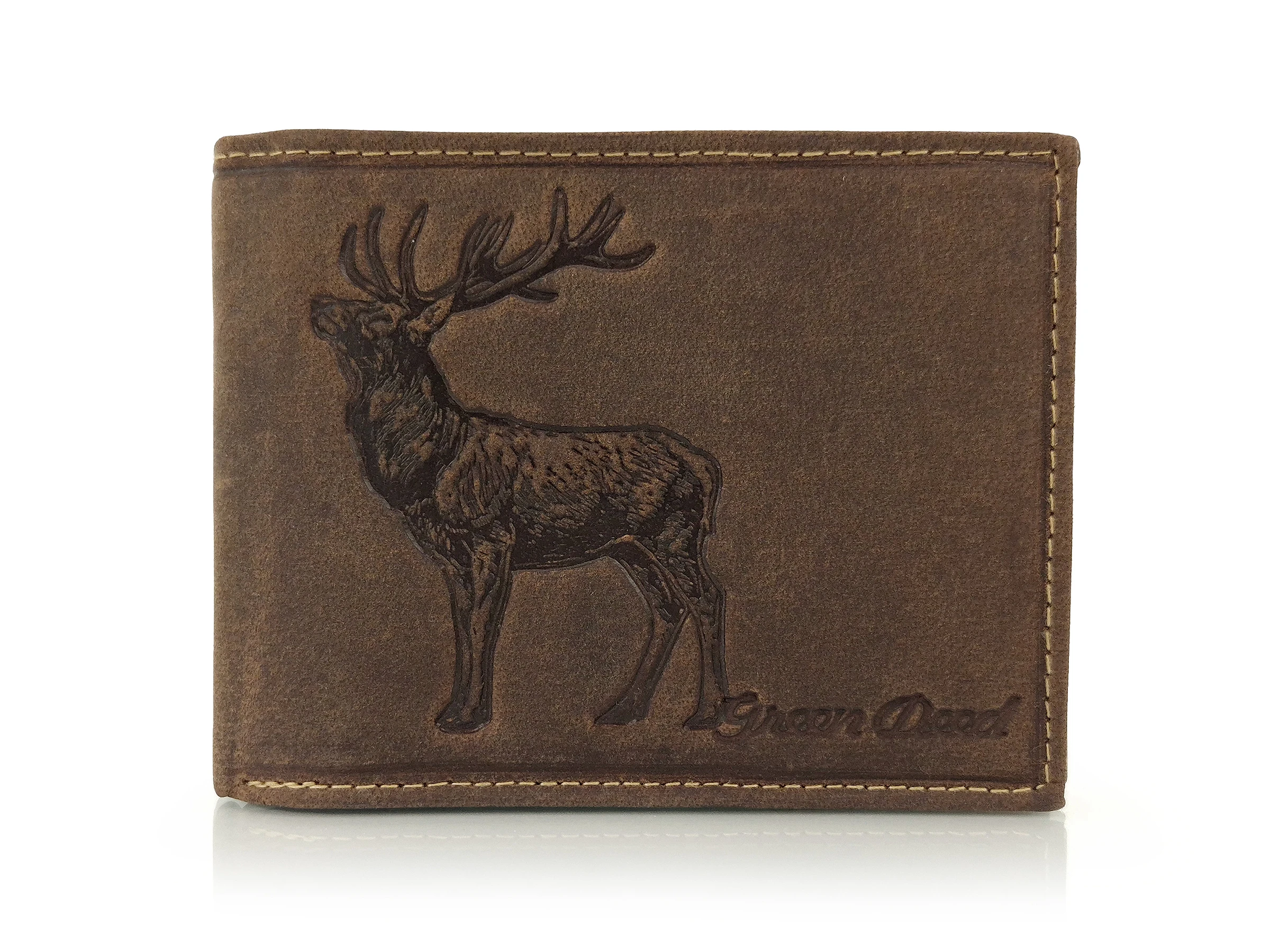 Skórzany portfel dla myśliwego z motywem jelenia GRREN DEED - zabezpieczenie RFID