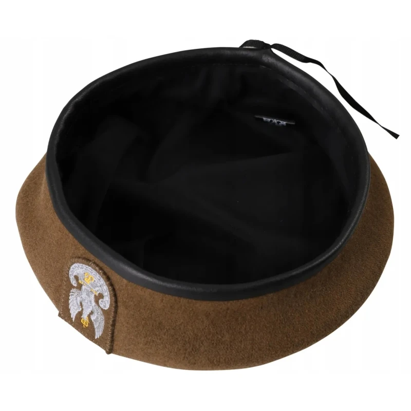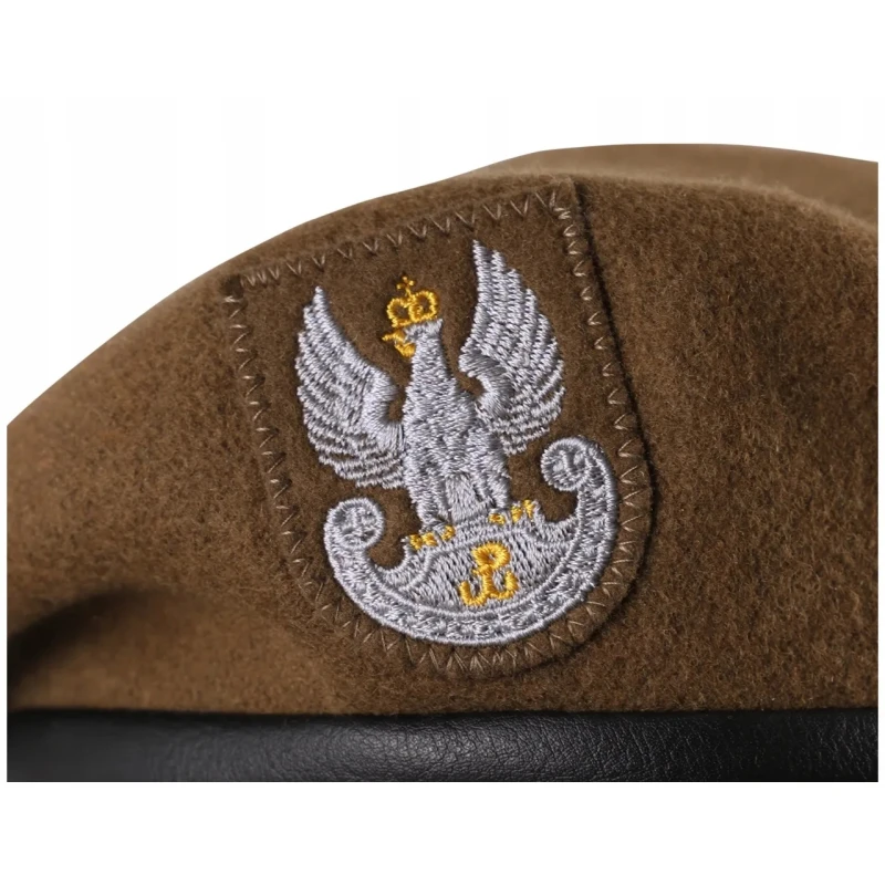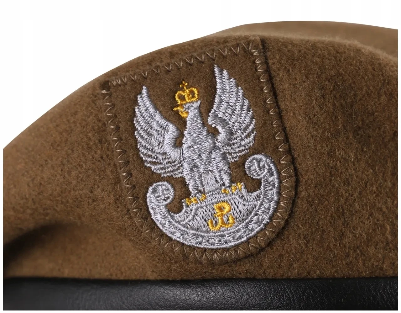 Beret został wykonany metodą tłoczenia, co eliminuje konieczność składania go w charakterystyczny "pieróg".