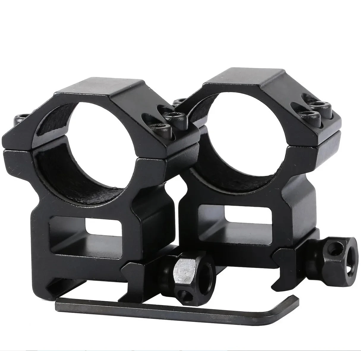 Praktyczny i wytrzymały montaż dwuczęściowy o wysokim profilu, idealny do lunet z calowym tubusem, montowany na szynę o szerokości 22 mm w standardzie picatinny/weaver.