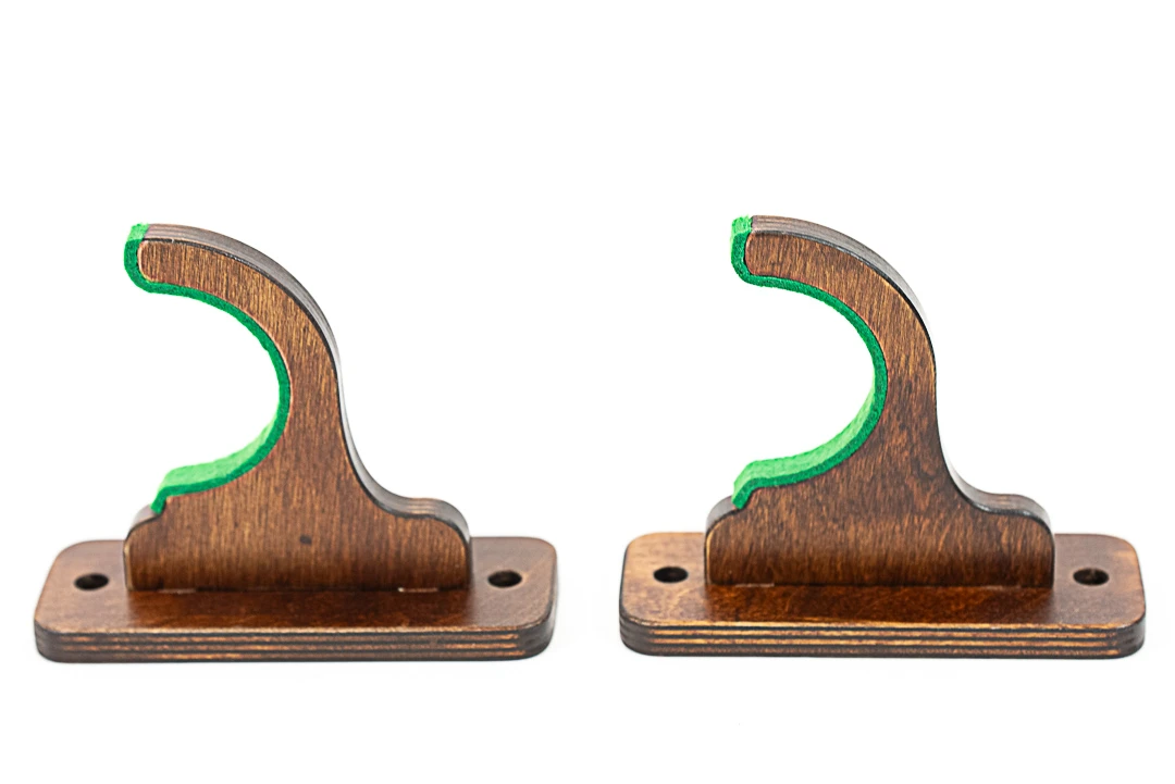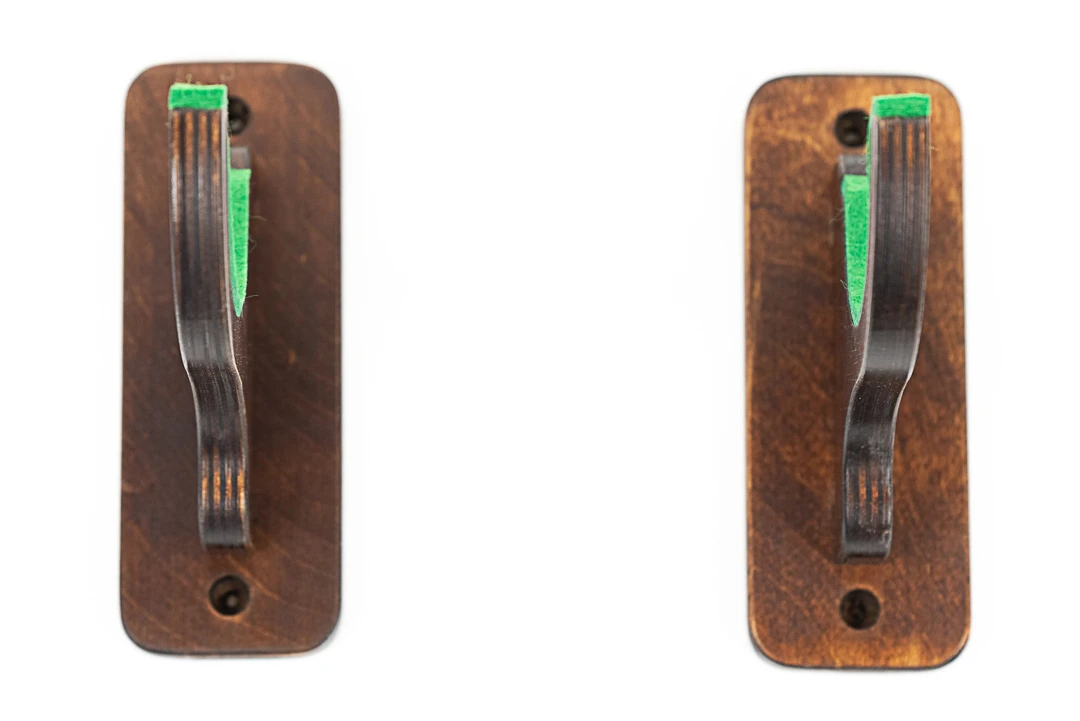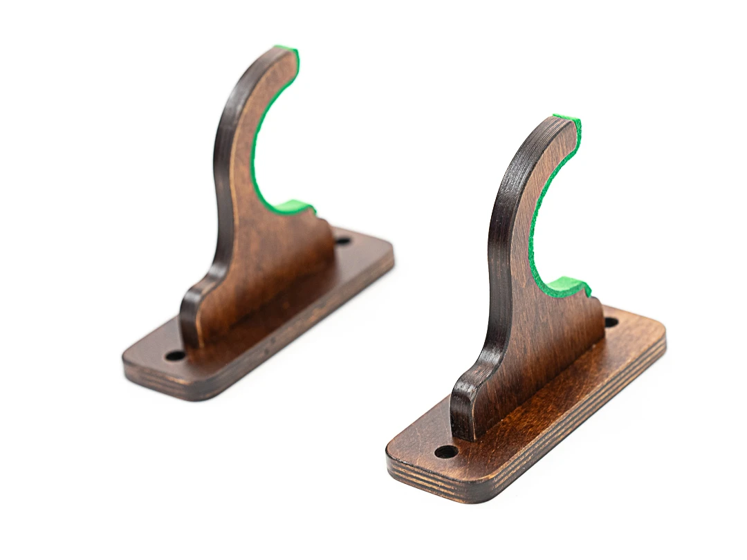 Funkcjonalność: Stojak umożliwia eksponowanie różnych rodzai broni na ścianie. Istotnym elementem są filcowe podkładki, zabezpieczające broń przed porysowaniem.