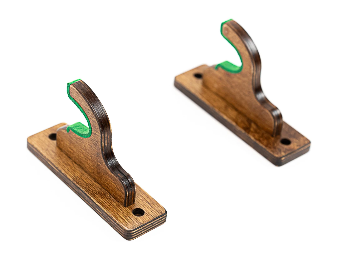 Funkcjonalność: Stojak umożliwia eksponowanie różnych rodzai broni na ścianie. Istotnym elementem są filcowe podkładki, zabezpieczające broń przed porysowaniem.