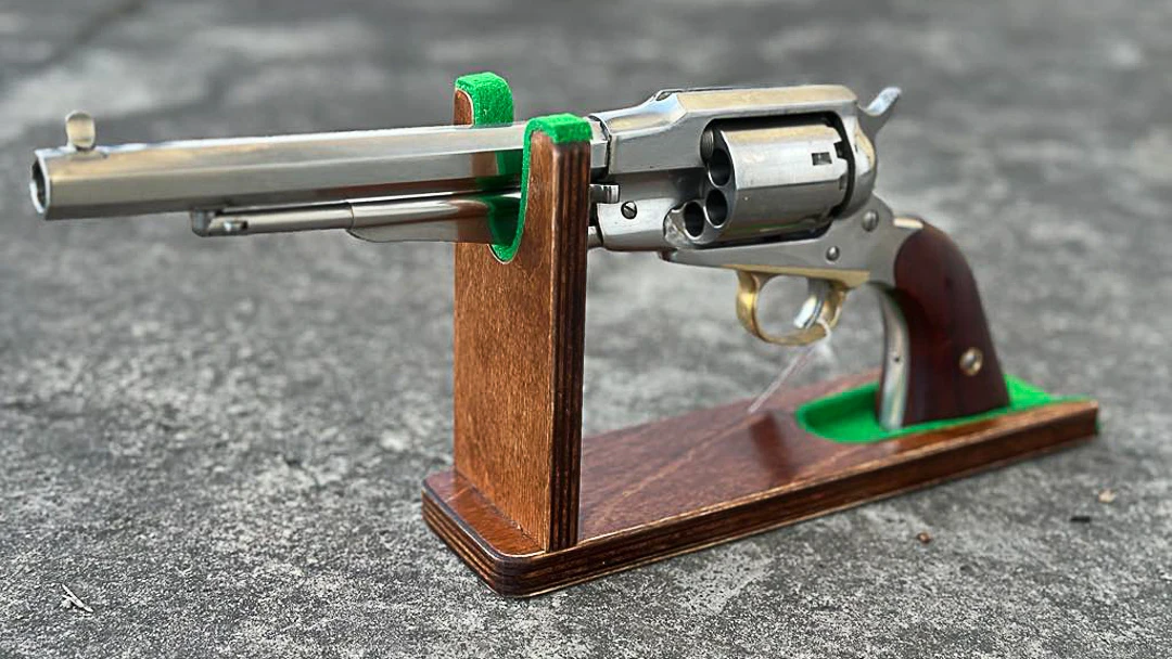 Stojak ekspozytor na broń krótką - rewolwer czarnoprochowy, pistolet, wiatrówkę, brązowy No.5