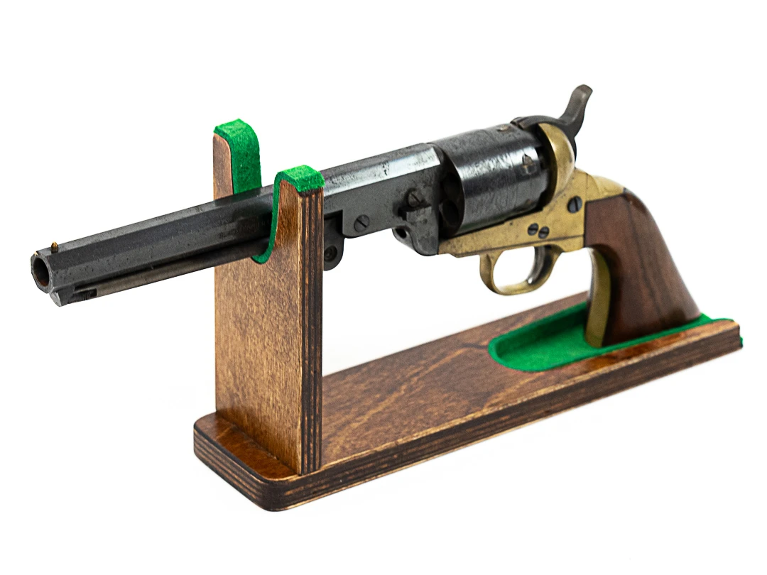 Prezentujemy stojak wykonany z becjowanej i lakierowanej sklejki, doskonale nadaje się do ekspozycji krótkiej wiatrówki lub ulubionego rewolweru czarnoprochowego To elegancki i praktyczny sposób na prezentację Twojej kolekcji broni - wiatróweki itp.