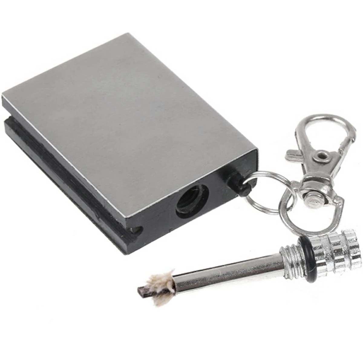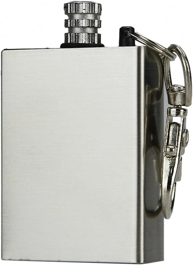 Z boku pojemnika znajduje się krzesiwo, które działa jak wodoodporna zdrapka.