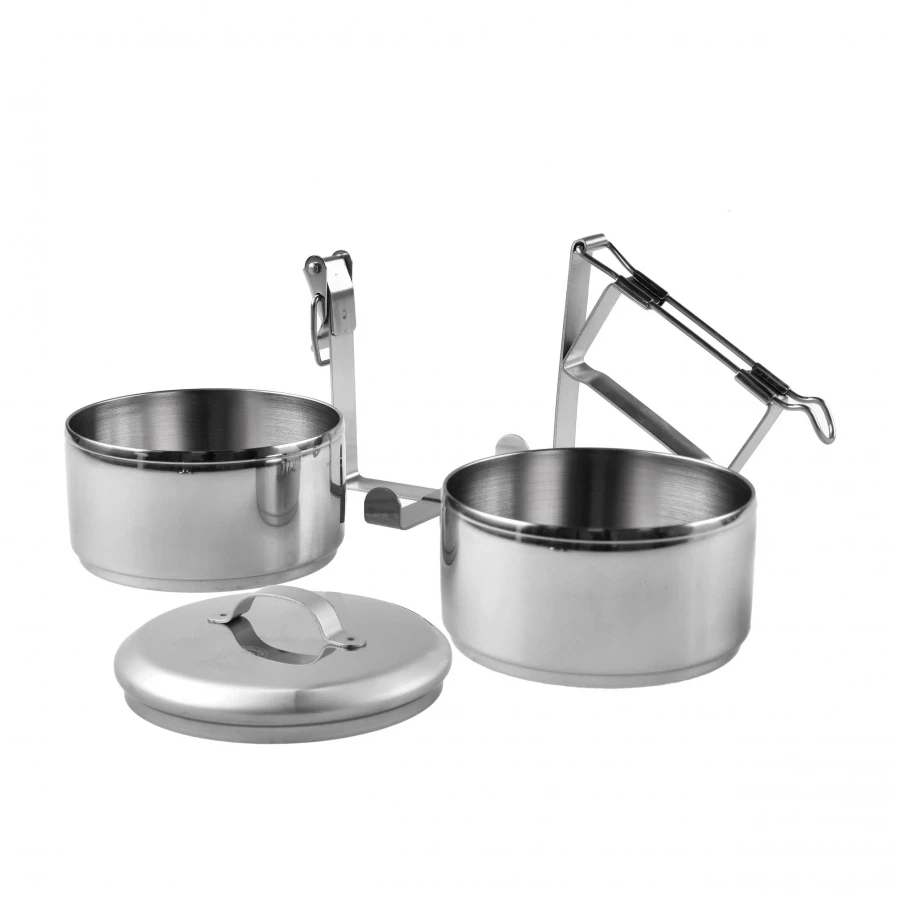 Prezentowany model to kompletny zestaw dwóch garnuszków i pokrywki, wykonanych z odpornej na korozję, wysokogatunkowej stali nierdzewnej 304.
