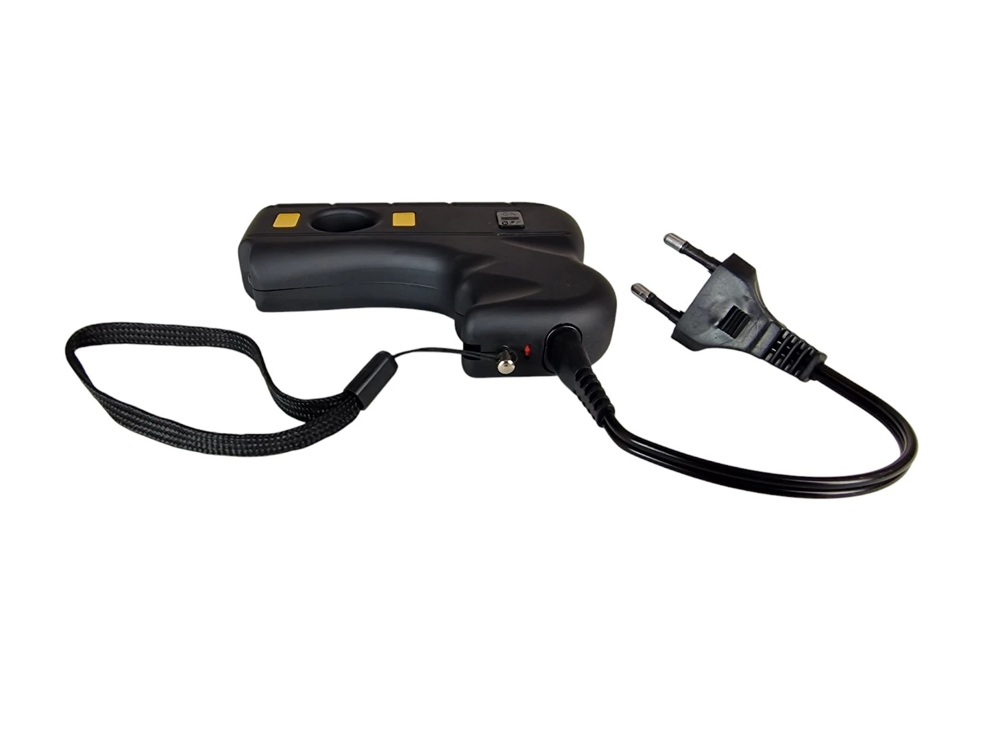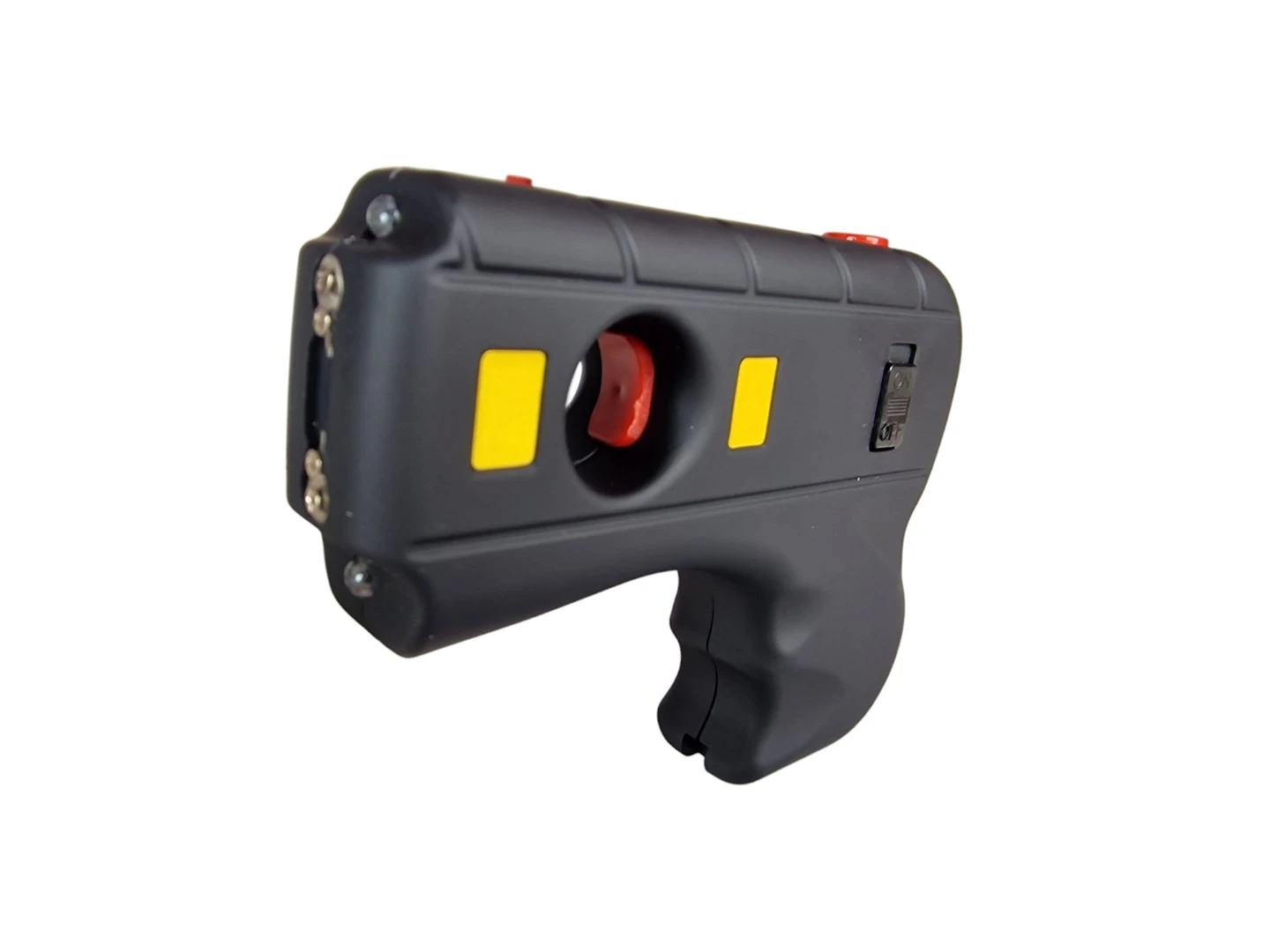 Urządzenie posiada ergonomiczny kształt pistoletu, który nie tylko zwiększa komfort i pewność chwytu, ale działa też psychologicznie odstraszająco.