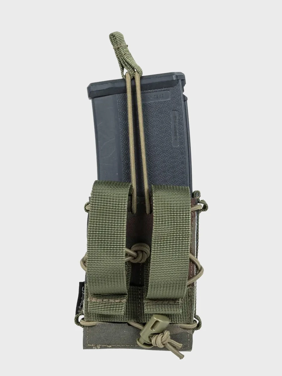 - Bezpieczne utrzymanie: shock‑cord trzyma magazynek stabilnie w każdej sytuacji