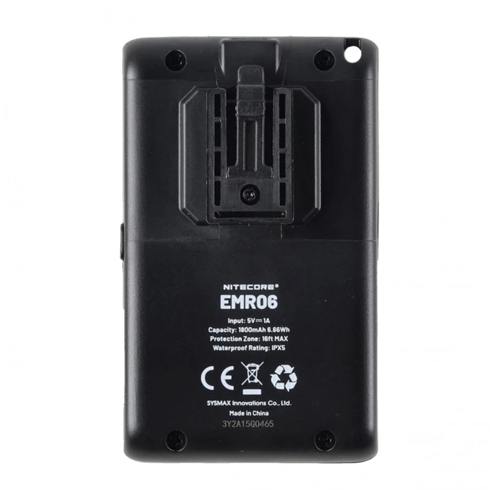 Dzięki akumulatorowi 1800 mAh urządzenie działa do 3,5 godziny na jednym ładowaniu, a port USB-C umożliwia łatwe doładowanie z powerbanku, ładowarki czy panelu solarnego, oferując niezależność energetyczną. Z wagą zaledwie 71 g i kompaktowymi wymiarami, EMR06 jest łatwy do przenoszenia, a silikonowy klips pozwala na wygodne mocowanie do plecaka, paska czy hamaka.