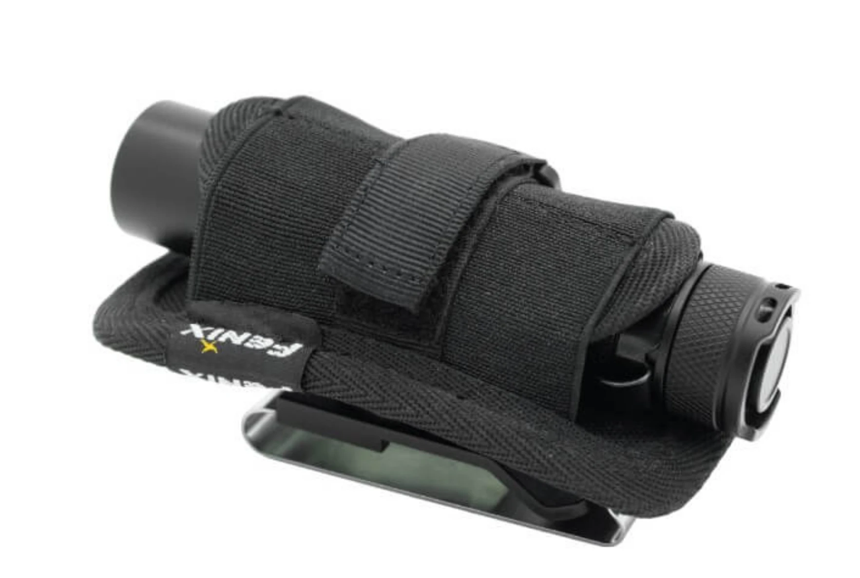 AB02 to uniwersalna, obrotowa kabura do latarek Fenix. Umożliwia przypięcie latarki do paska lub plecaka. Klips do paska wykonany jest ze stali nierdzewnej, natomiast kabura wykonana jest z wytrzymałego nylonu. Kabura posiada zapinany na rzep pasek zaciskowy pozwalający na dopasowanie jej do posiadanego modelu latarki. Konstrukcja umożliwia obrót latarki o 360 stopni oraz ustawienie jej w jednej z 12 pozycji. Pasuje do latarek o średnicy tubusu 18-26mm.