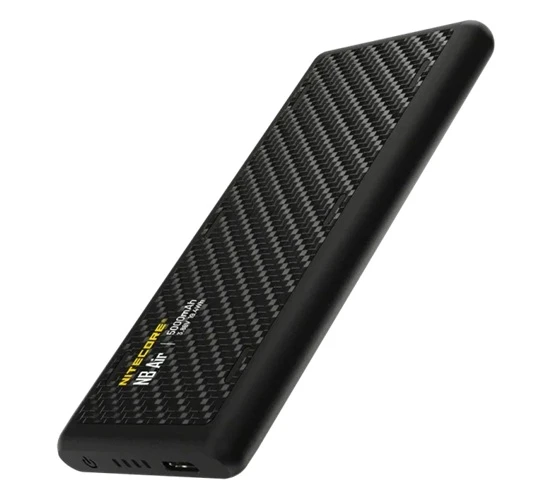 Model Nitecore NB Air wyposażono w dwustronny port USB-C, który umożliwia szybkie ładowanie różnych urządzeń oraz samego power banku.