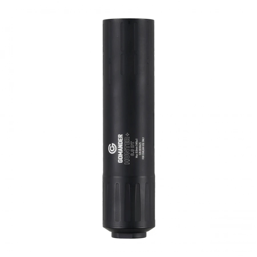 Tłumik do broni myśliwskiej Gomander Hunter 8.0 DT Generacji II to to skuteczne urządzenie wytłumiające dźwięk strzału, nakręcane na gwint u wylotu lufy (Direct Thread). Stworzony został specjalnie do współpracy z bronią myśliwską, gdzie ogranicza płoszenie zwierzyny. Tłumik wykonano z lekkiego aluminium lotniczego, co przekłada się na niską masę oraz dobre przewodnictwo cieplne (szybsze schładzanie). Dodatkowe pokrycie powierzchni tłumika powłoką ochronną Cerakote zapewnia zabezpieczenie przed niekorzystnym wpływem kwaśnego środowiska tworzonego przez resztki prochu. Najważniejszym jest w konstrukcji system redukujący powracanie gazów prochowych z powrotem do komory nabojowej oraz w stronę strzelca. Tłumik jest też dzięki temu łatwy w czyszczeniu.