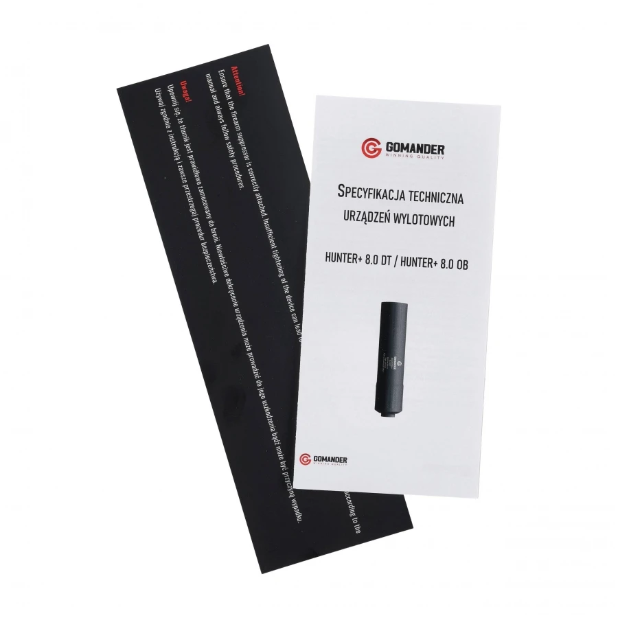 Ostrzeżenie! - Nie zaleca się używać niesprawnego bądź nieprawidłowo zamocowanego na lufie urządzenia. Może to poskutkować nieprawidłową pracą tłumika, jego uszkodzeniem bądź poważnym zranieniem strzelca.