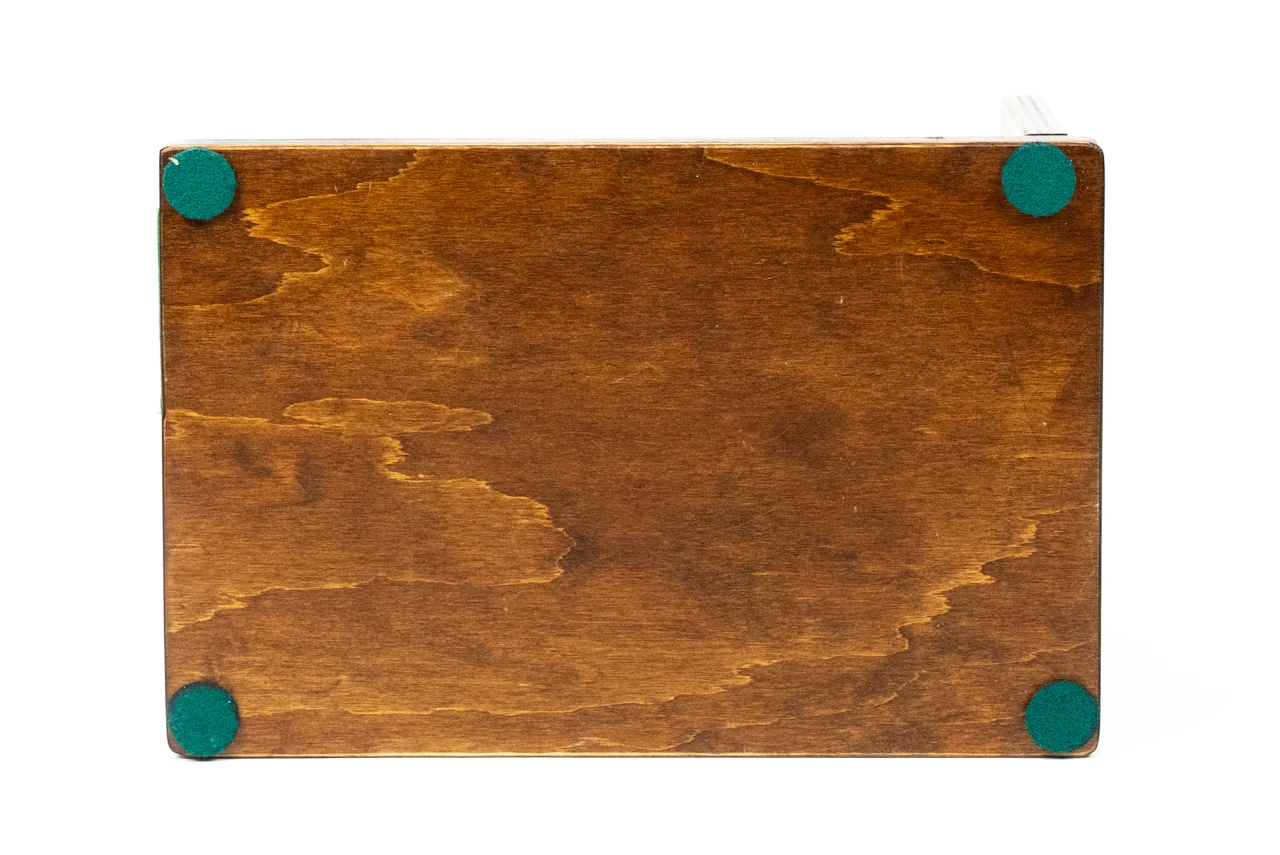 - Wykonany z grubej 10 mm sklejki bejcowanej oraz wyłożonej grubym filcem