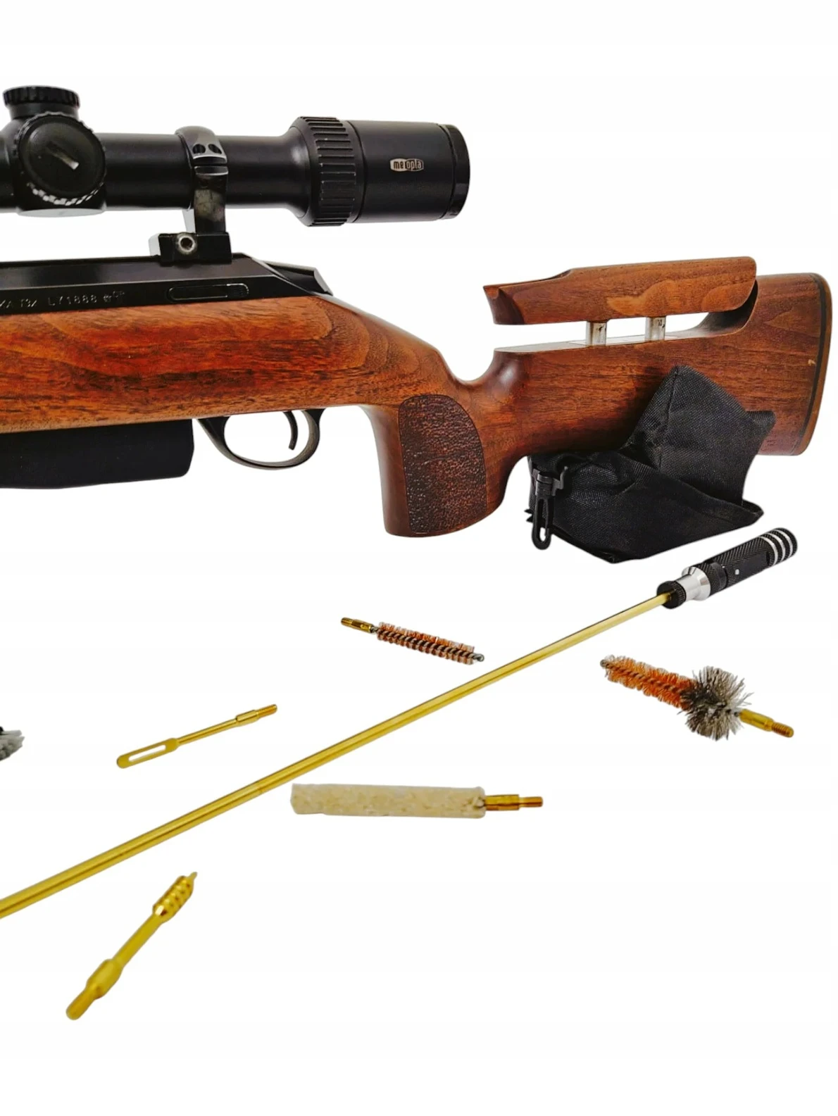 Solidny mosiężny wycior z gwintem w połączeniu z aluminiową, obrotową rączką prowadzi szczotki płynnie i stabilnie, minimalizując ryzyko uszkodzeń. Zestaw uzupełniają uchwyty do filców i ściereczek, osłona lufy oraz precyzyjna butelka na olej, która ułatwia aplikację środków konserwujących.