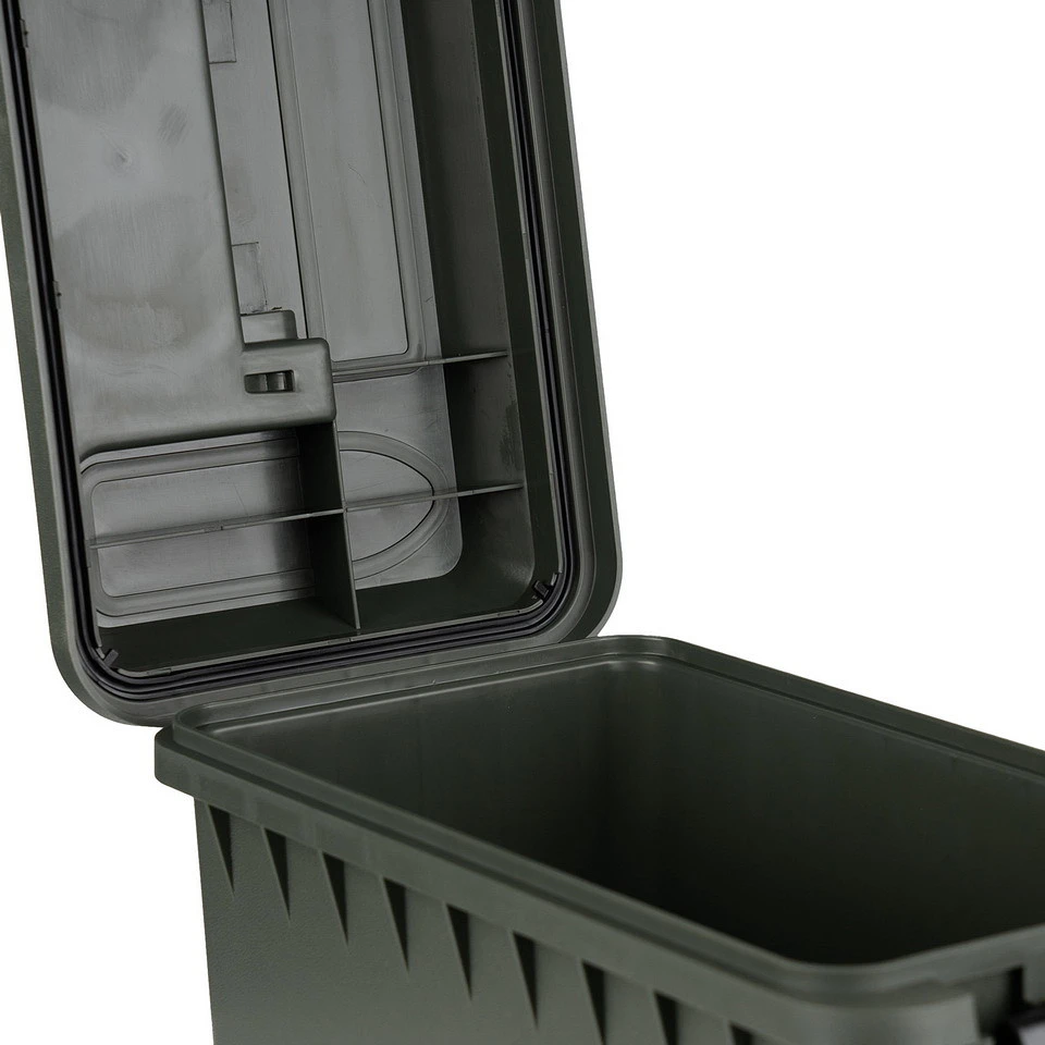 Dzięki przemyślanej budowie pudełko można bez problemu ustawiać jedno na drugim, co znacznie ułatwia organizację przestrzeni. Szczelna pokrywa z uszczelką dodatkowo chroni przechowywane przedmioty przed wpływem warunków zewnętrznych, co jest szczególnie ważne podczas transportu lub przechowywania w garażu, piwnicy lub na strzelnicy.
