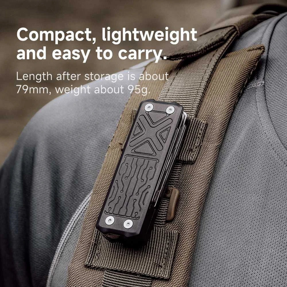 Po złożeniu multitool bez problemu mieści się w kieszeni spodni, kurtki lub w plecaku, a jego
