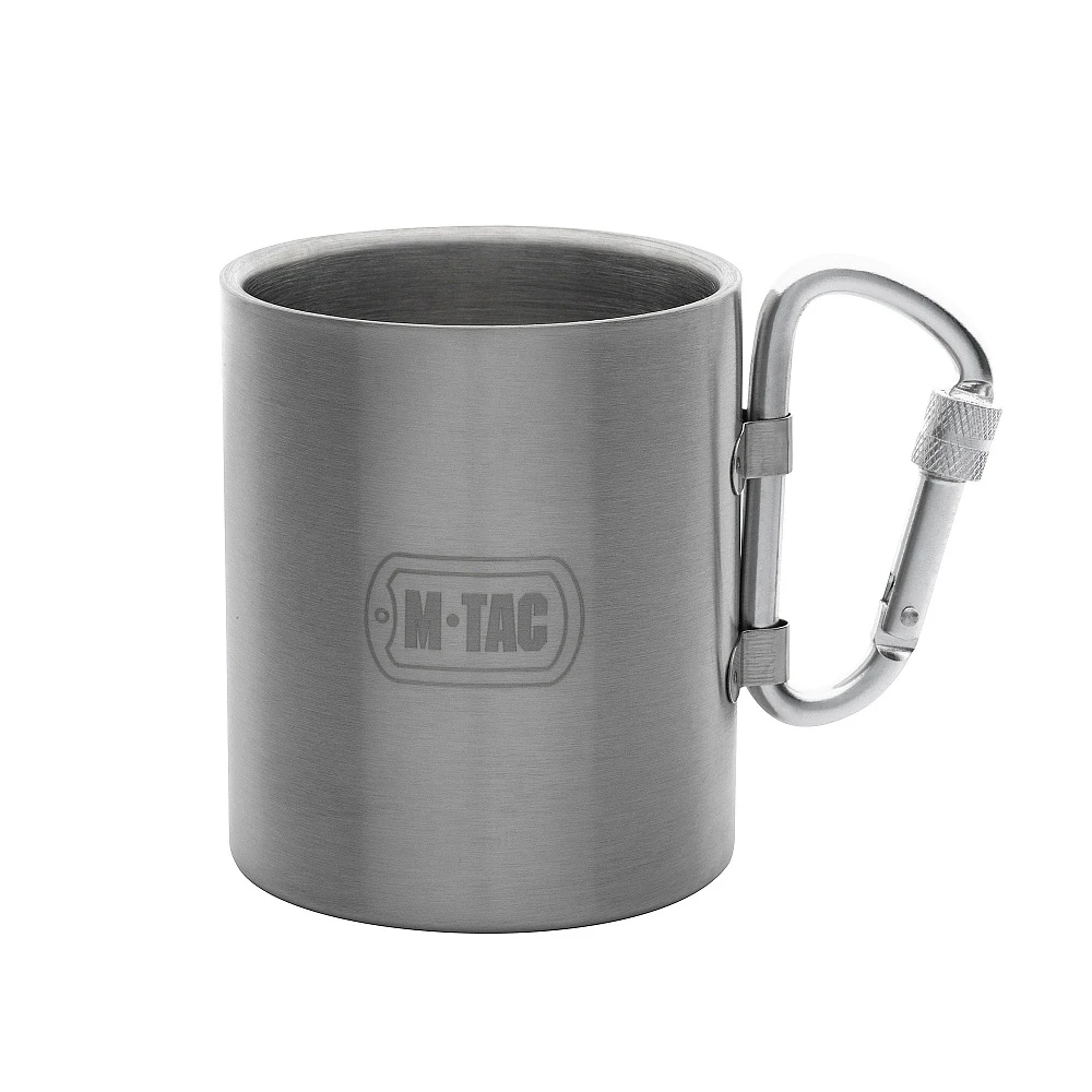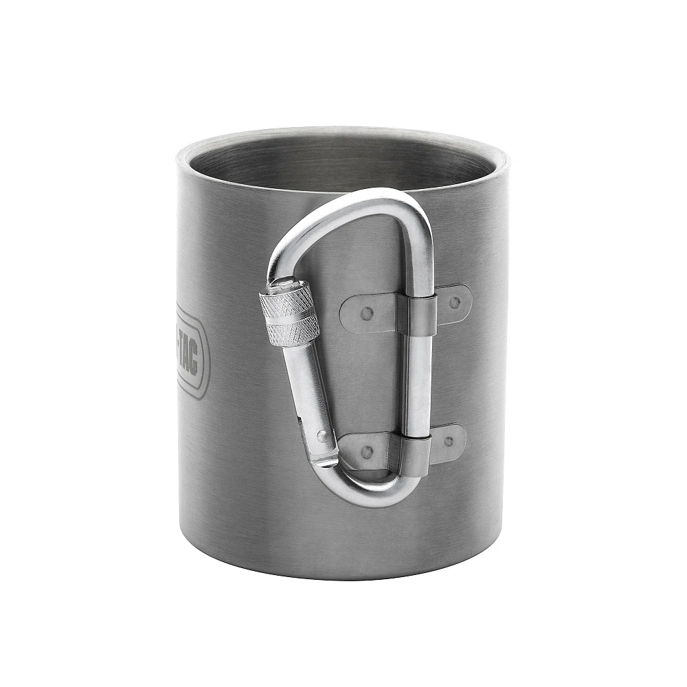 Zamiast tradycyjnej rączki, kubek wyposażono w praktyczny karabinek, który pozwala wygodnie przypiąć go do plecaka, paska czy innego ekwipunku, co czyni go niezwykle funkcjonalnym podczas wędrówek i wypraw outdoorowych.