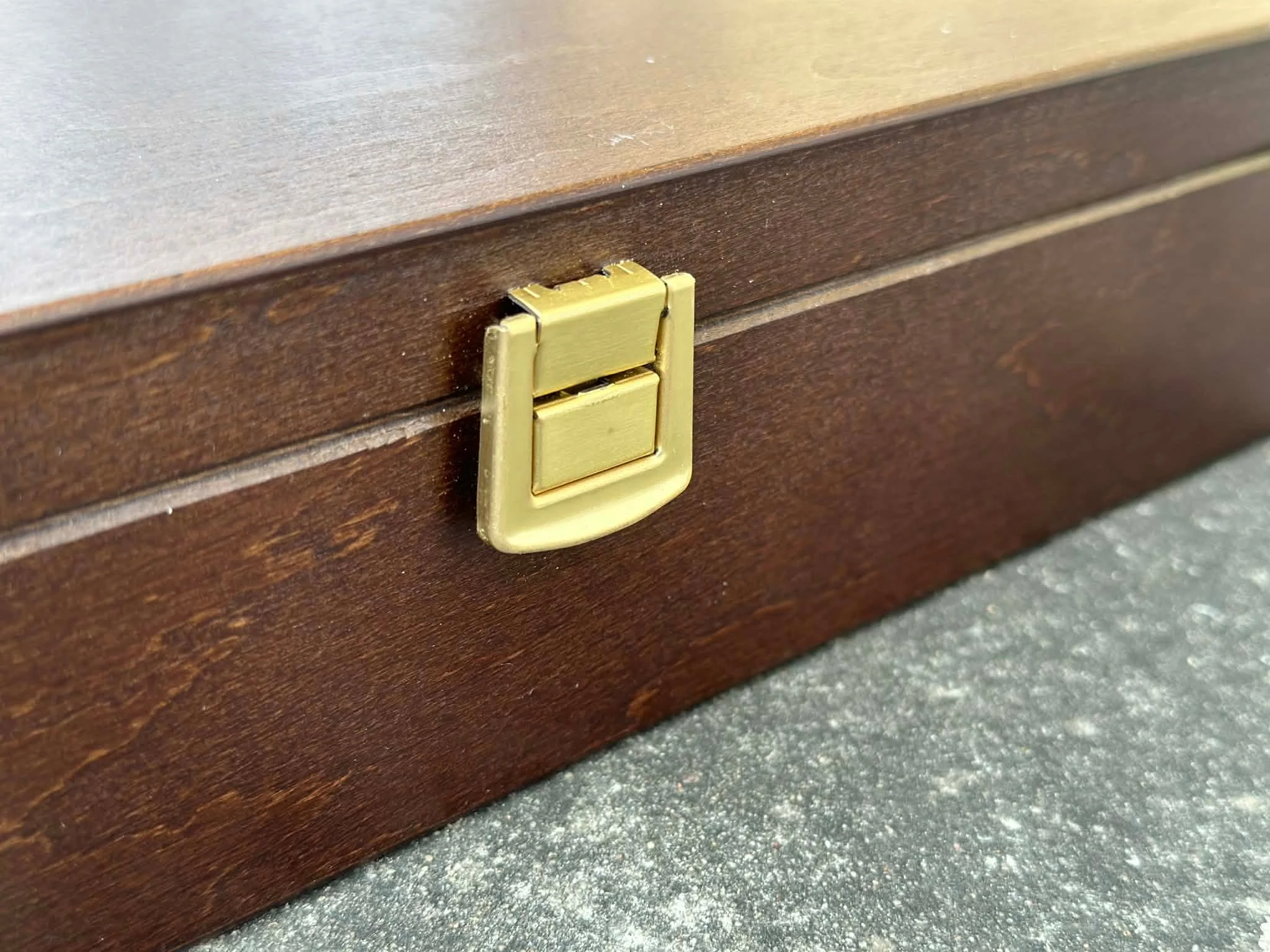 miedziane zawiasy oraz solidne zatrzaski, które gwarantują stabilność i bezpieczeństwo przechowywanej zawartości.