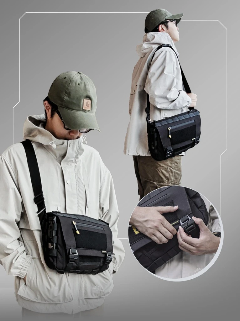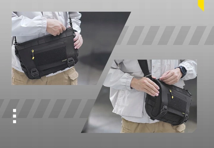 Torba została wyposażona w zewnętrzny i wewnętrzny system MOLLE, który pozwala na indywidualne dopasowanie układu kieszeni i akcesoriów. Na klapie, pasku oraz na powierzchni torby można zamocować dodatkowe moduły, naszywki lub kieszenie. Wewnątrz platformy MOLLE umożliwiają bezpieczne przypięcie takich elementów jak latarki, powerbanki, baterie czy inne akcesoria EDC.