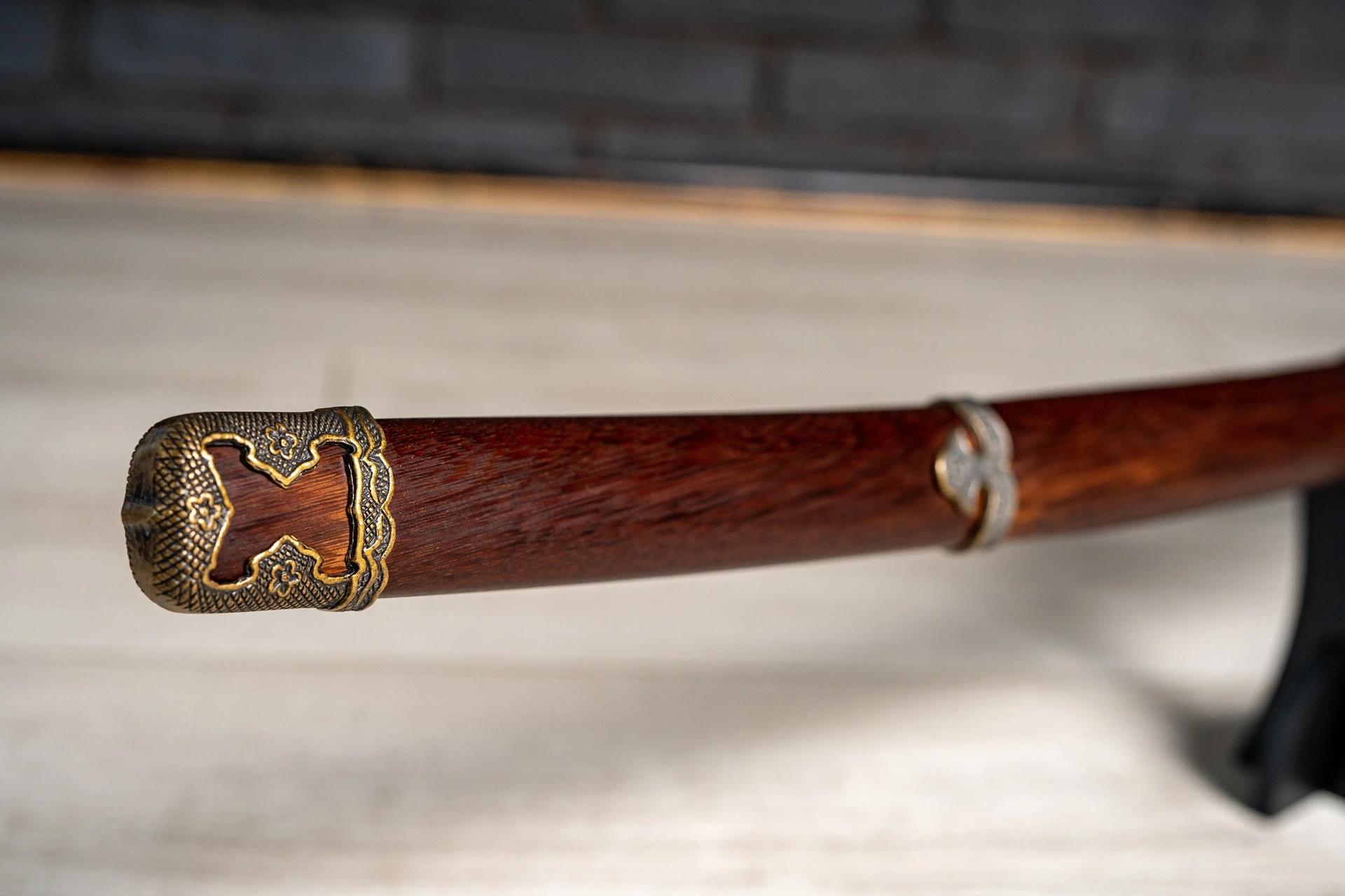 Ta katana to model z pojedyńczym zbroczem, ze stali T10 ale z bardzo ozdobną Sayą z drewna różanego palisandru, ze względu na liczne zdobienia potrafi przyciągnąc, ale przy okazji zapewniając pełnię użytkową.