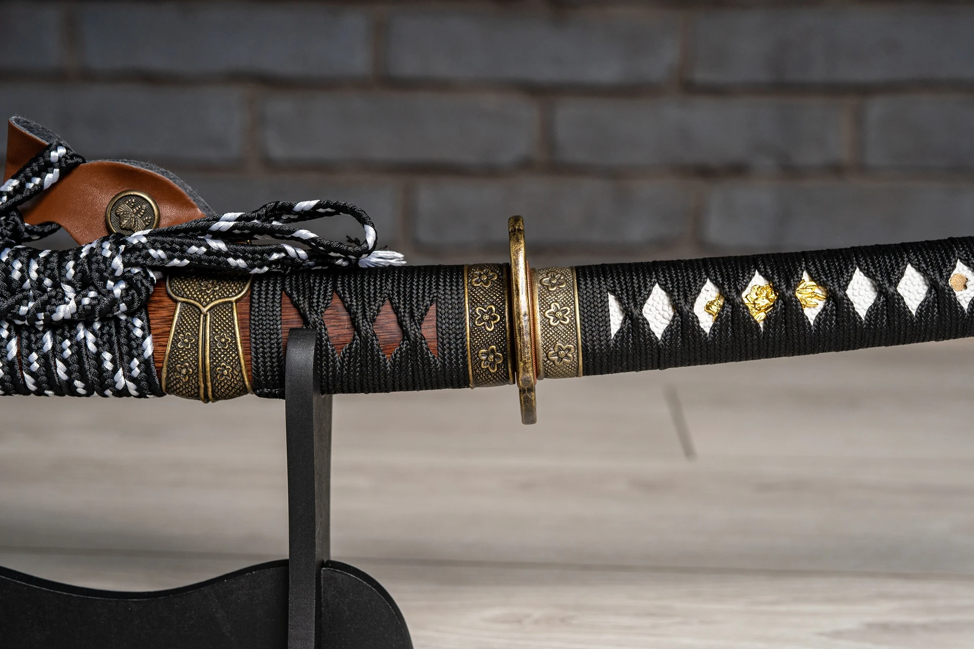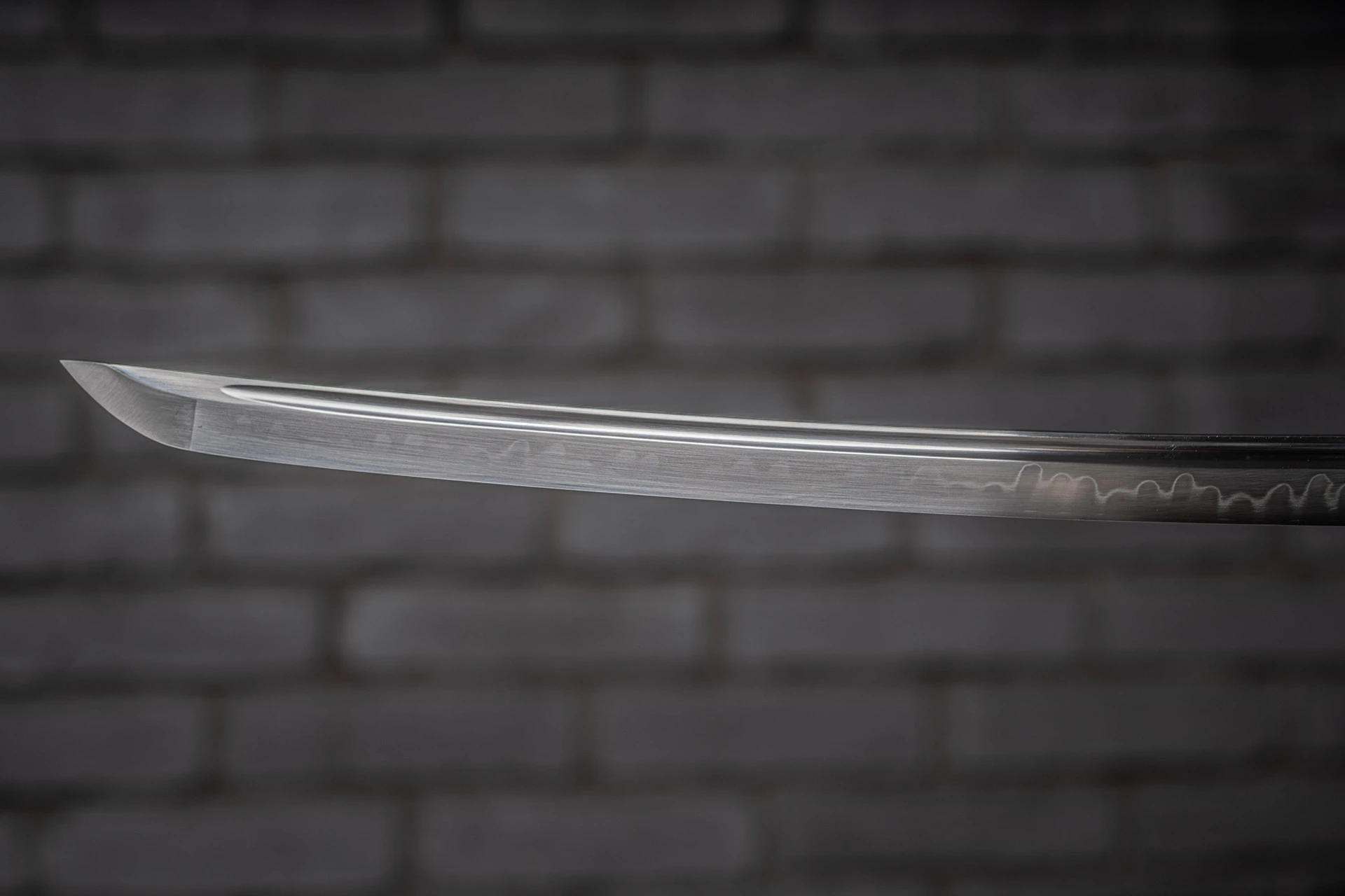 Katana prezentuje wysoką jakość wykonania widoczną w perfekcyjnie dopasowanych elementach rękojeści, wyważeniu oraz charakterystycznym wyglądzie powierzchni ostrza. Ten miecz jest ręcznie szlifowany i polerowany, co nadaje mu elegancki, lustrzany efekt wykończenia.