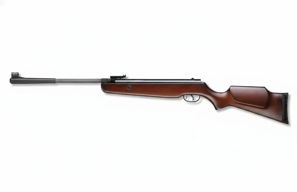 - - Klasyczna drewniana kolba zapewnia pewny chwyt i podkreśla elegancki wygląd wiatrówki.