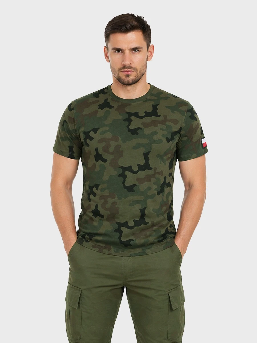 Koszulka męska bawełniana T-Shirt z naszywkami flagi PL WZ.93