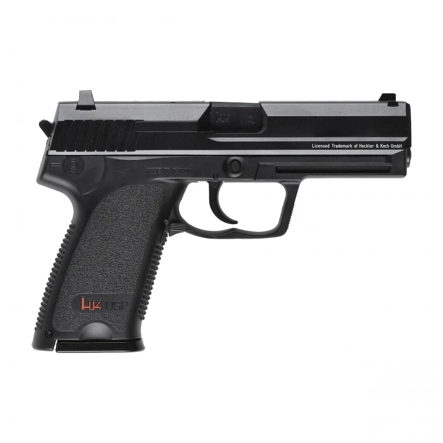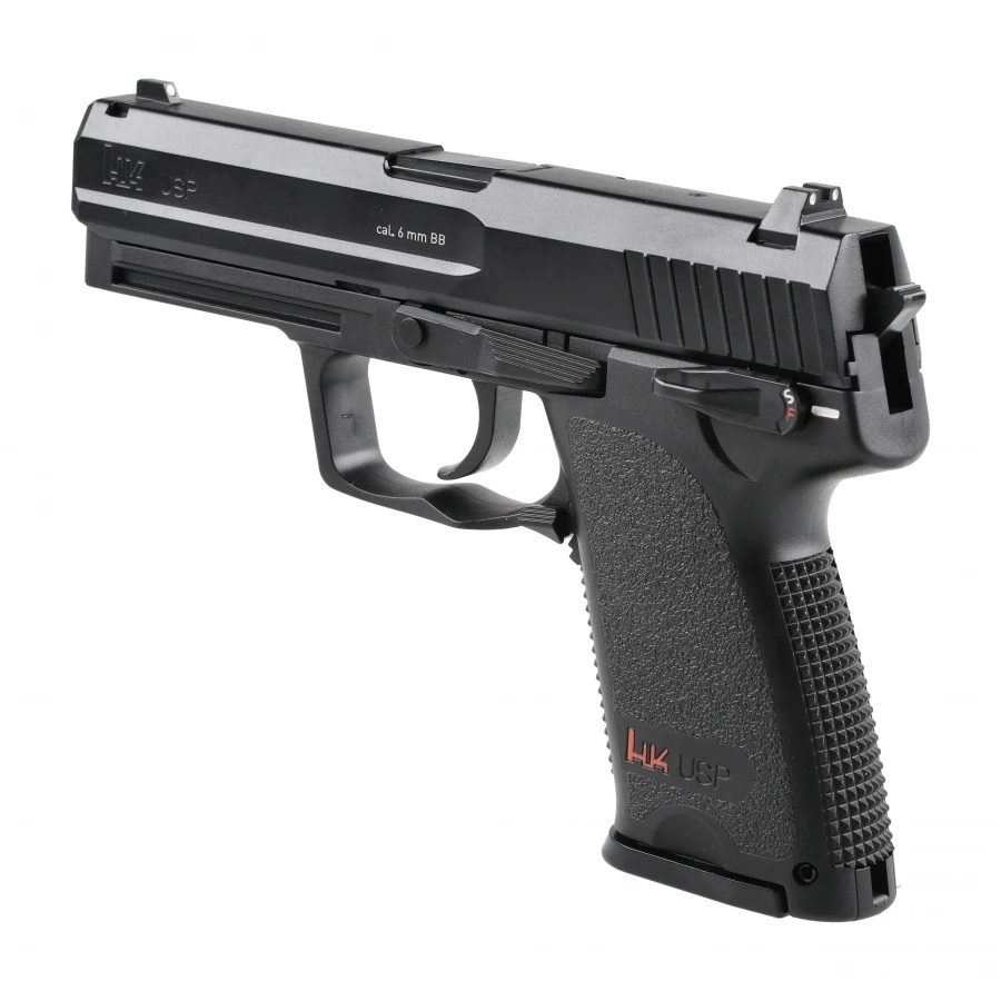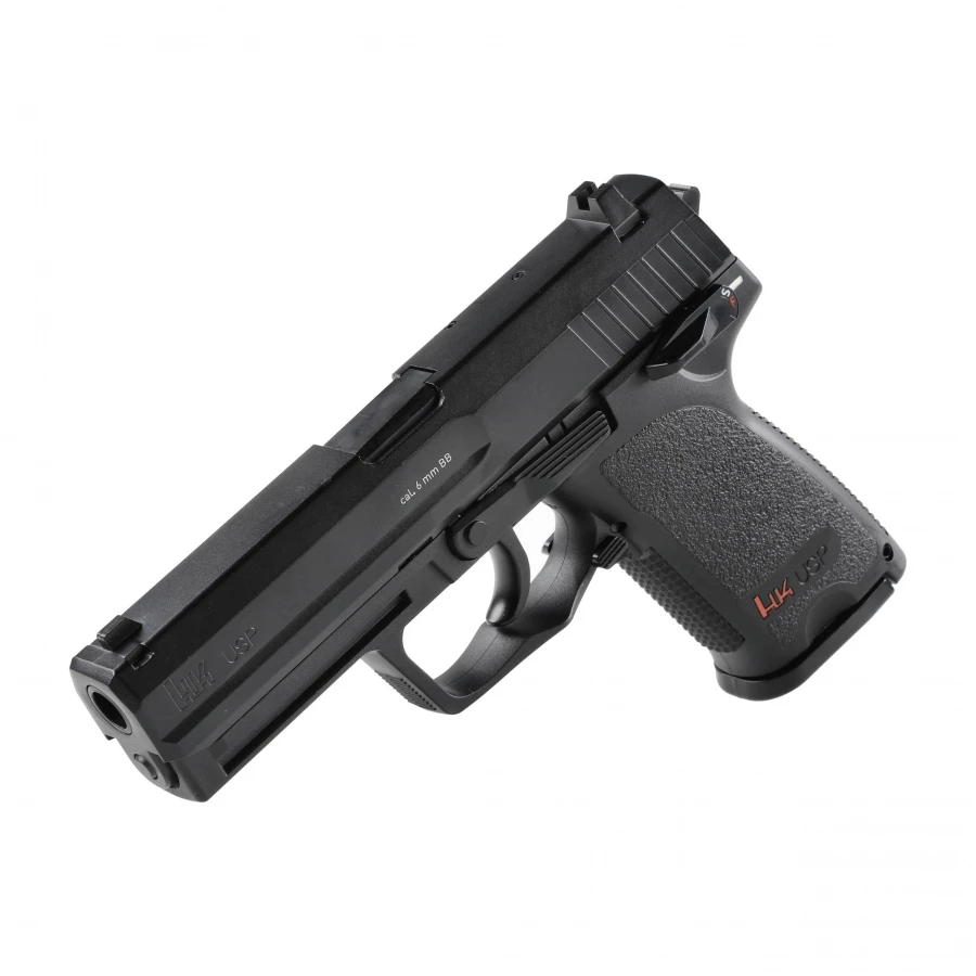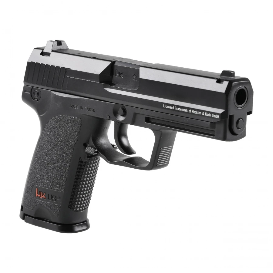 HK USP z metalowym zamkiem i szkieletem z abs-u. Pistolet ten zasilany jest 12g kapsułą Co2 (montowaną w magazynku), co pozwala na oddanie około 50-100 strzałów w zależności od warunków otoczenia. Replika ma doskonale spasowane części i w swoim przedziale cenowym zdecydowanie wyprzedza podobne produkty. Duża moc repliki, sprawia, że może być stosowana z powodzeniem nie tylko na małych, ale również średnich dystansach. Przed niekontrolowanym strzałem zapobiega bezpiecznik skrzydełkowy, znajdujący się po lewej stronie szkieletu. Pistolet jest doskonale wyważony i pewnie leży w dłoni dzięki antypoślizgowej fakturze chwytu. Zwalniacz magazynka umiejscowiony jest podobnie jak w oryginale, symetrycznie, po dwóch stronach kabłąka. Replika posiada oryginalne logo i oznaczenia producenta broni palnej. Istnieje możliwość montażu dodatkowych akcesoriów np. latarki, znacznika laserowego, dzięki szynie w standardzie 22mm.