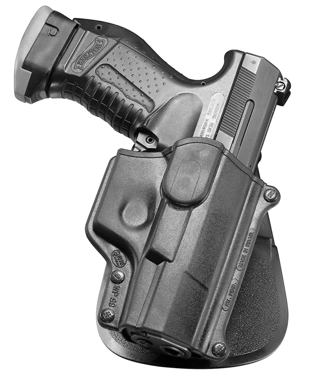 Kabura obrotowa do pistoletu P99 FOBUS Paddle Roto wykonana metodą wtryskową, z wysokiej jakości wytrzymałego a zarazem lekkiego polimeru. Kabura na broń krótką.