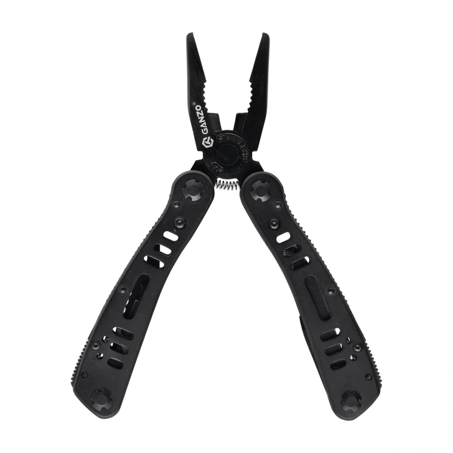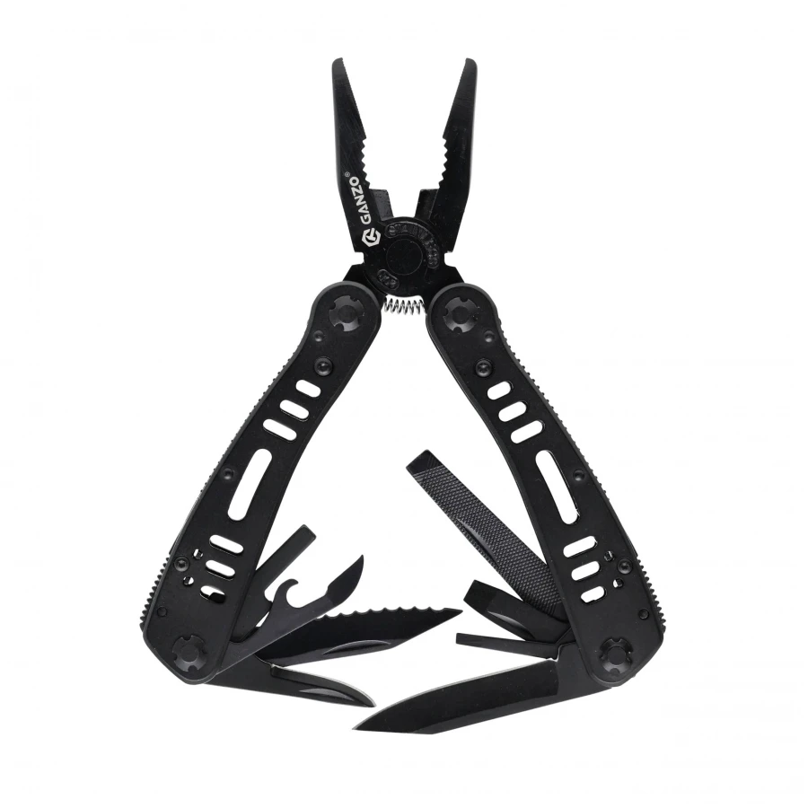 Multitool Ganzo G103 ma w sobie wszystko co niezbędne przy remoncie, instalacji i w nieoczekiwanych awariach. Na uwagę zasługuje umieszczenie wszystkich urządzeń na zewnętrznych stronach rękojeści, co znacznie ułatwia i przyspiesza dostęp, bez potrzeby otwierania całego multitoola. RękojAść została wykonana z wytrzymałego aluminium, a ostrza ze stali 440C. Pewny chwyt umożliwiają karbowane brzegi. W komplecie 9 bitów oraz pokrowiec z możliwością przypięcia do pasa.