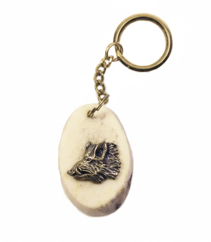 Gustowny brelok myśliwski z  wizerunkiem dzika.