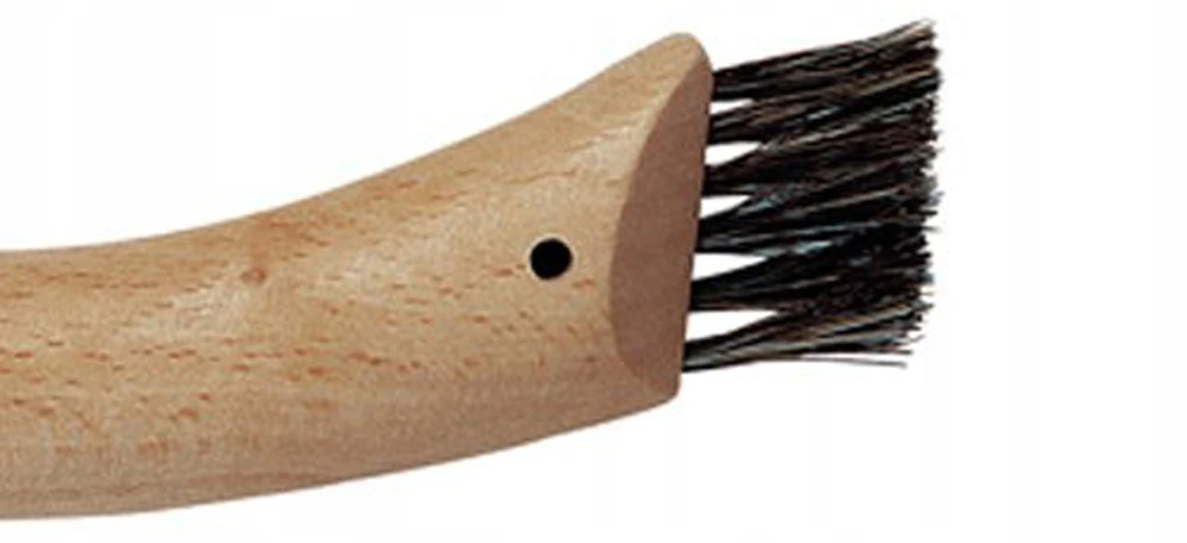 Na jej końcu znajduje się pędzelek z włosia dzika do omiatania grzybów oraz oczko do ewentualnego zaplecenia sznureczka.