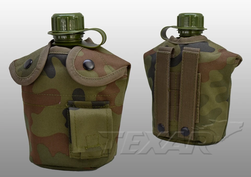 Manierka posiada nylonowy pokrowiec w kamuflażu WZ93 pokryty od wewnątrz syntetycznym futerkiem.