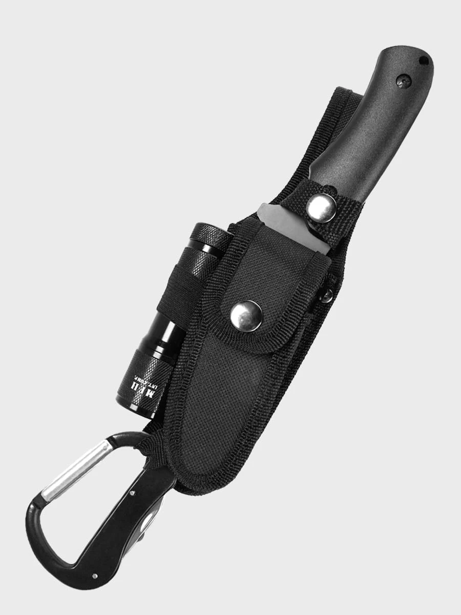 W pochwie noża znajduje się doskonały scyzoryk z trzema ostrzami z blokadą