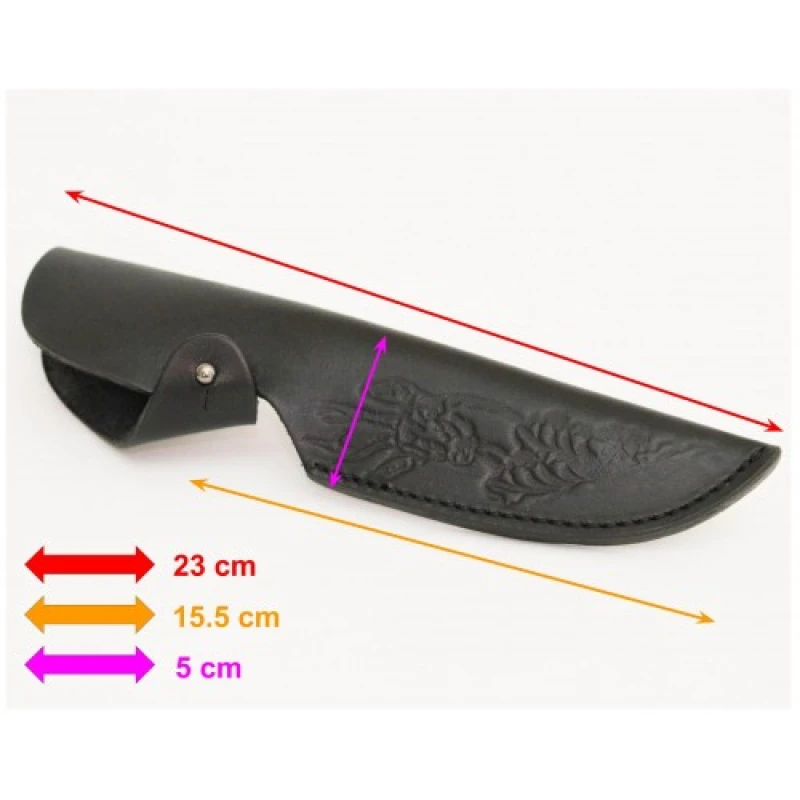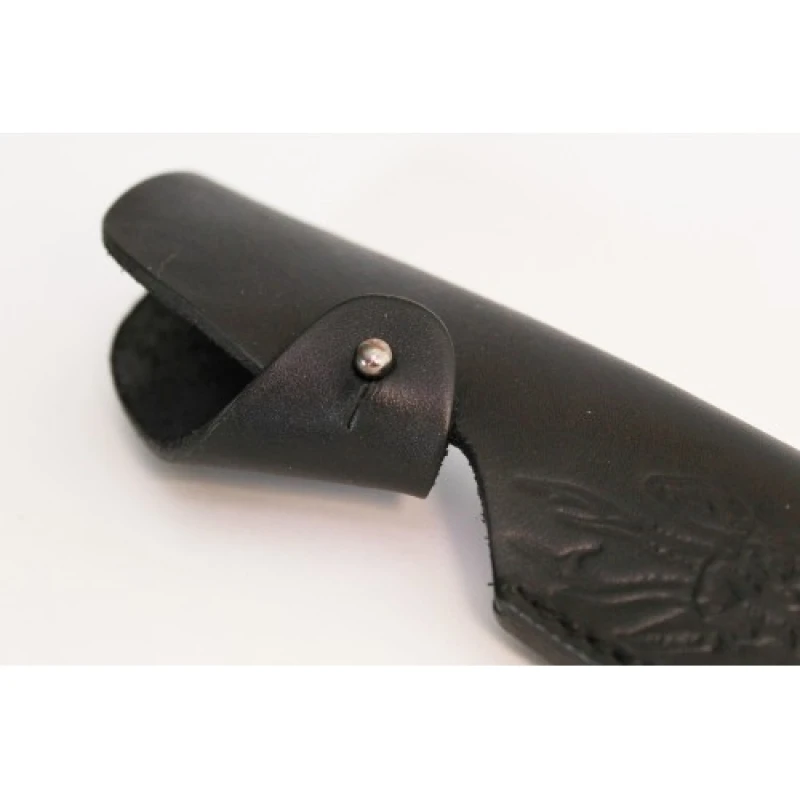 Zapinana jest na knopik, który zabezpiecza nóż przed zgubieniem.
