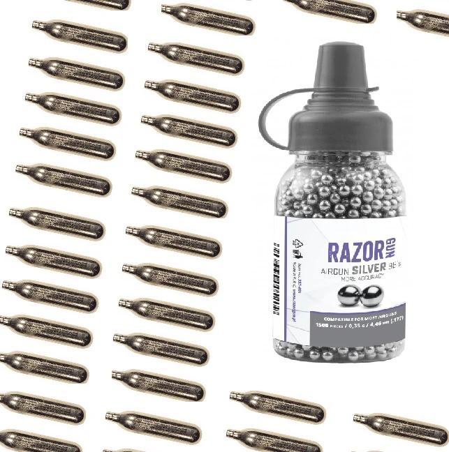 Zestaw kapsuł Co2 12g - 25 szt + śrut stalowy BB's 1500 szt
