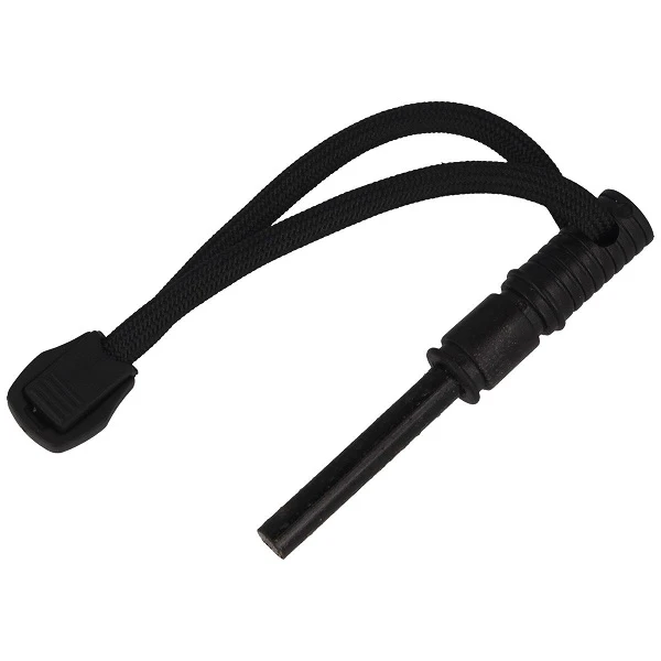Wraz z nożem dołączono pochewkę zapinaną na zatrzask w którym można przenosić nóż np. przypięty przy pasie oraz krzesiwo.