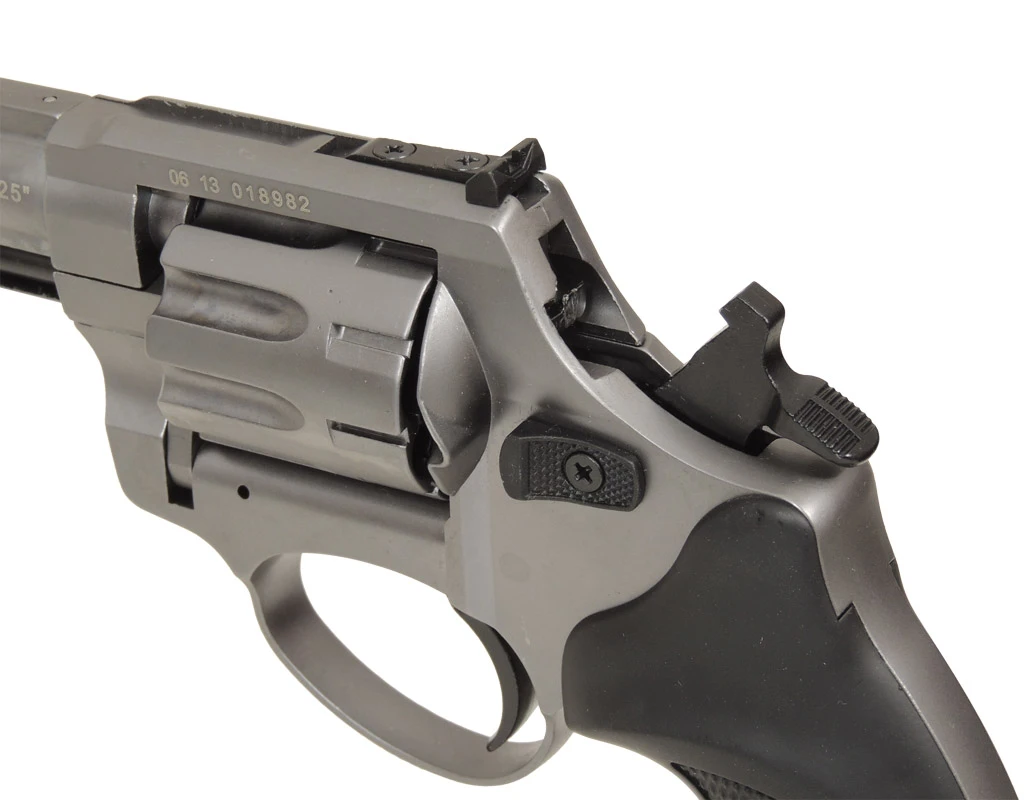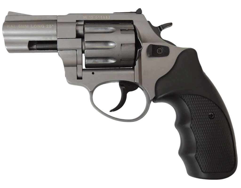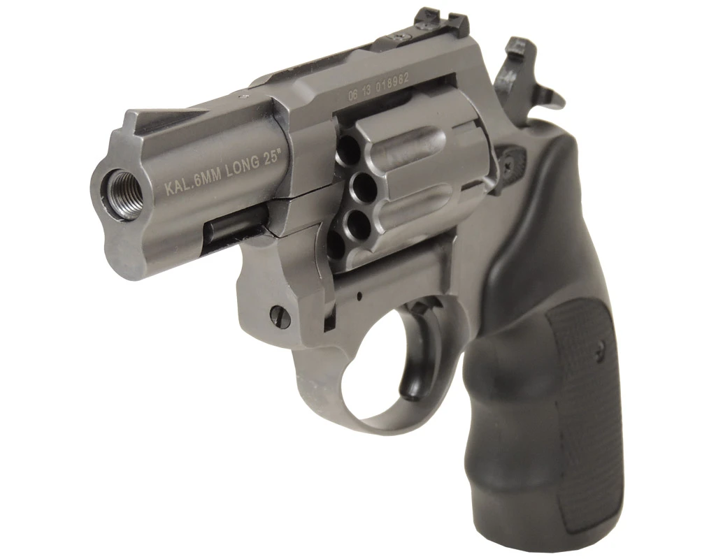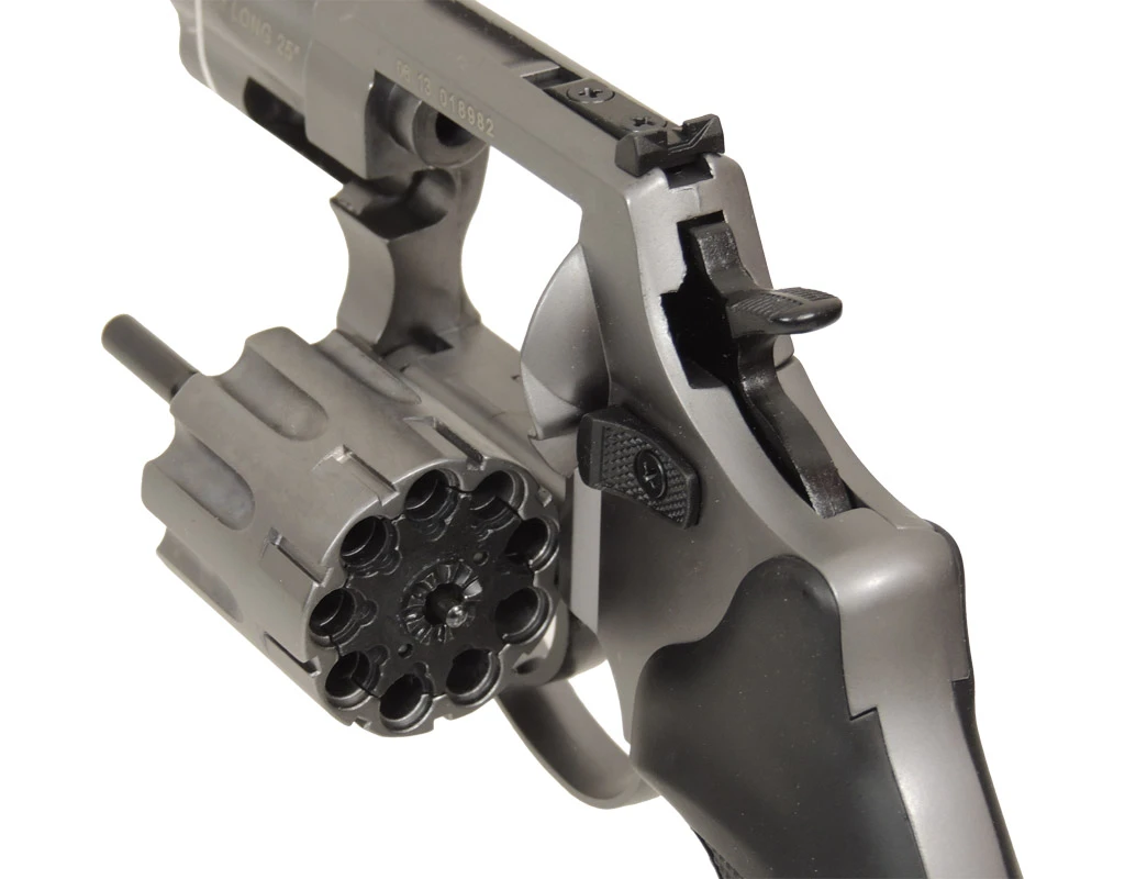 , bez materiału miotającego. Dzięki odpowiedniej budowie bębna rewolweru i zastosowanym w nim zabezpieczeniom, rewolweru tego nie da się przerobić na broń palną ostrą. Nie pasuje do niego żadna inna amunicja hukowa, gazowa ani ostra.