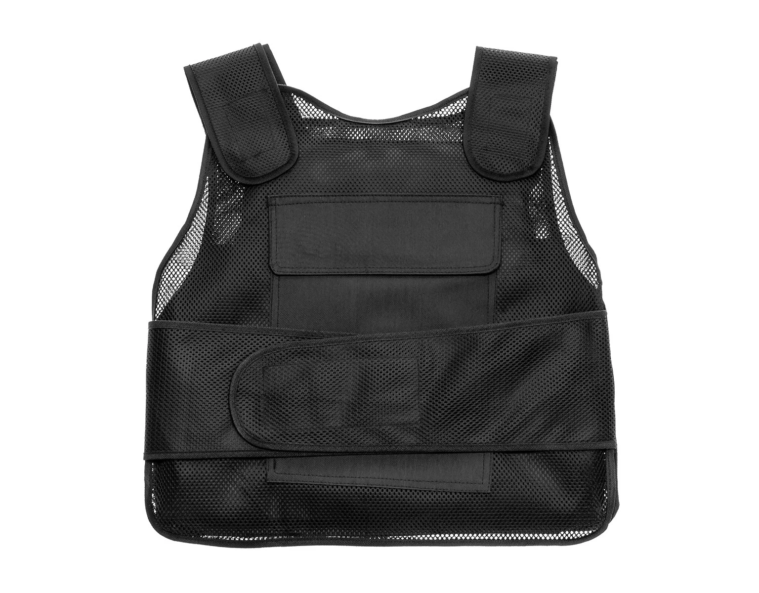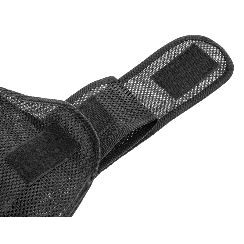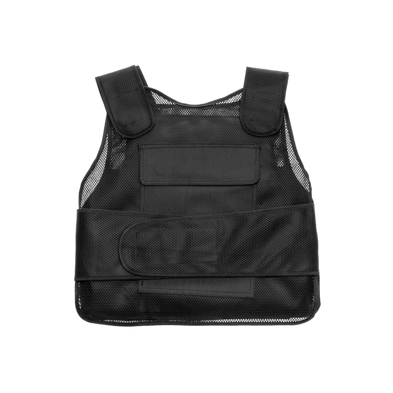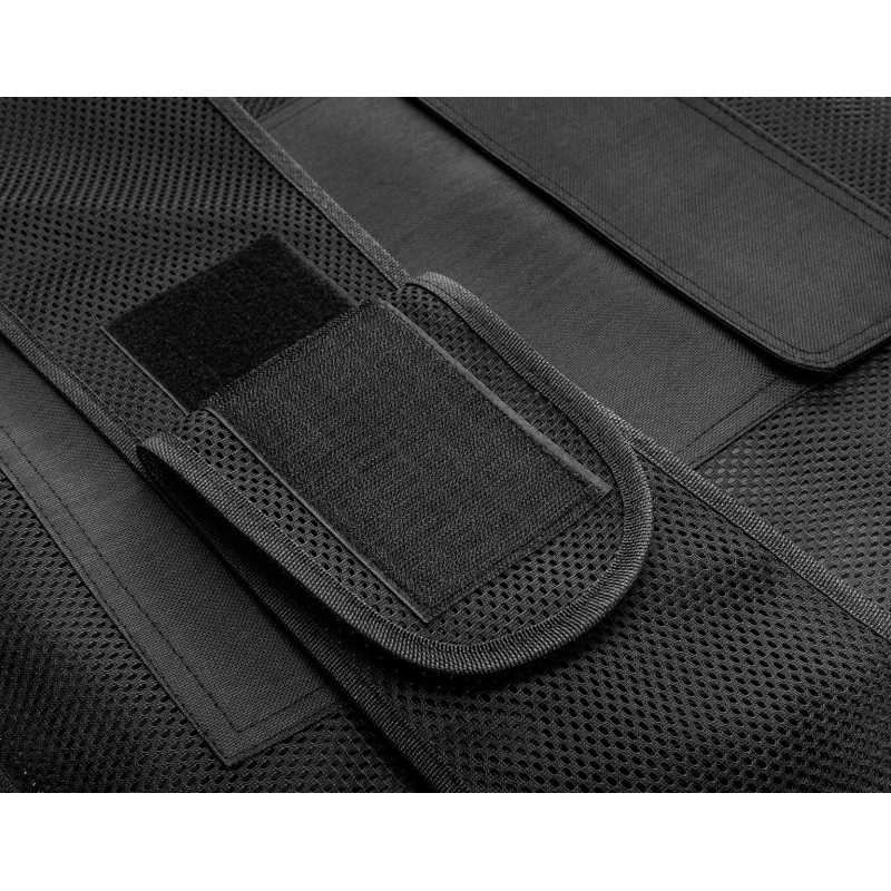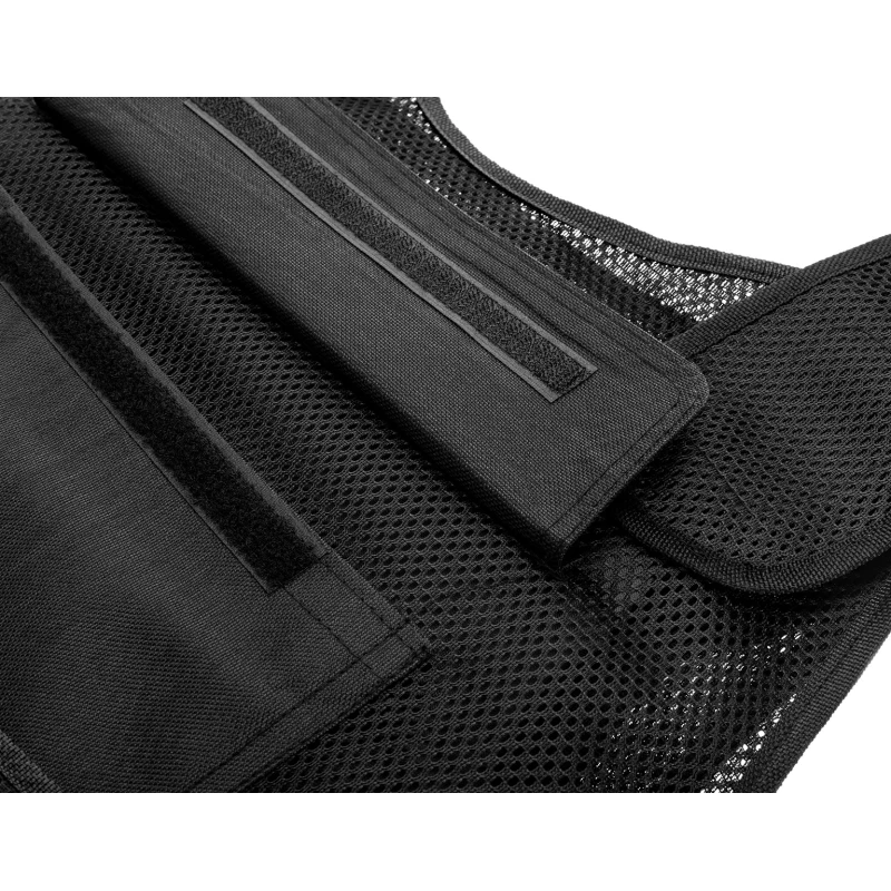 Kamizelka nożoodporna posiada regulowane szelki oraz pas za pomocą solidnych, szerokich rzepów.