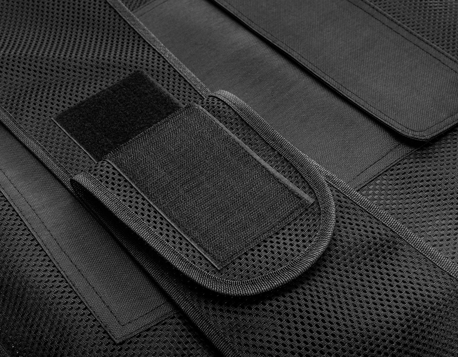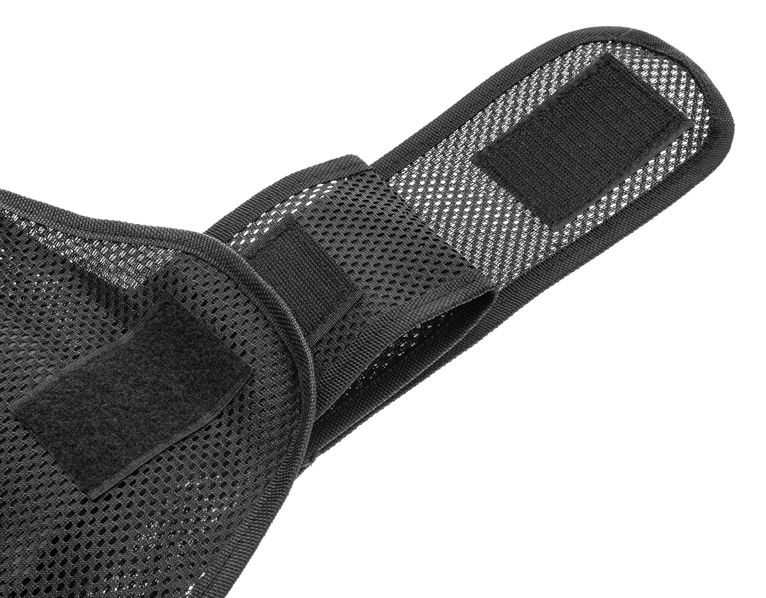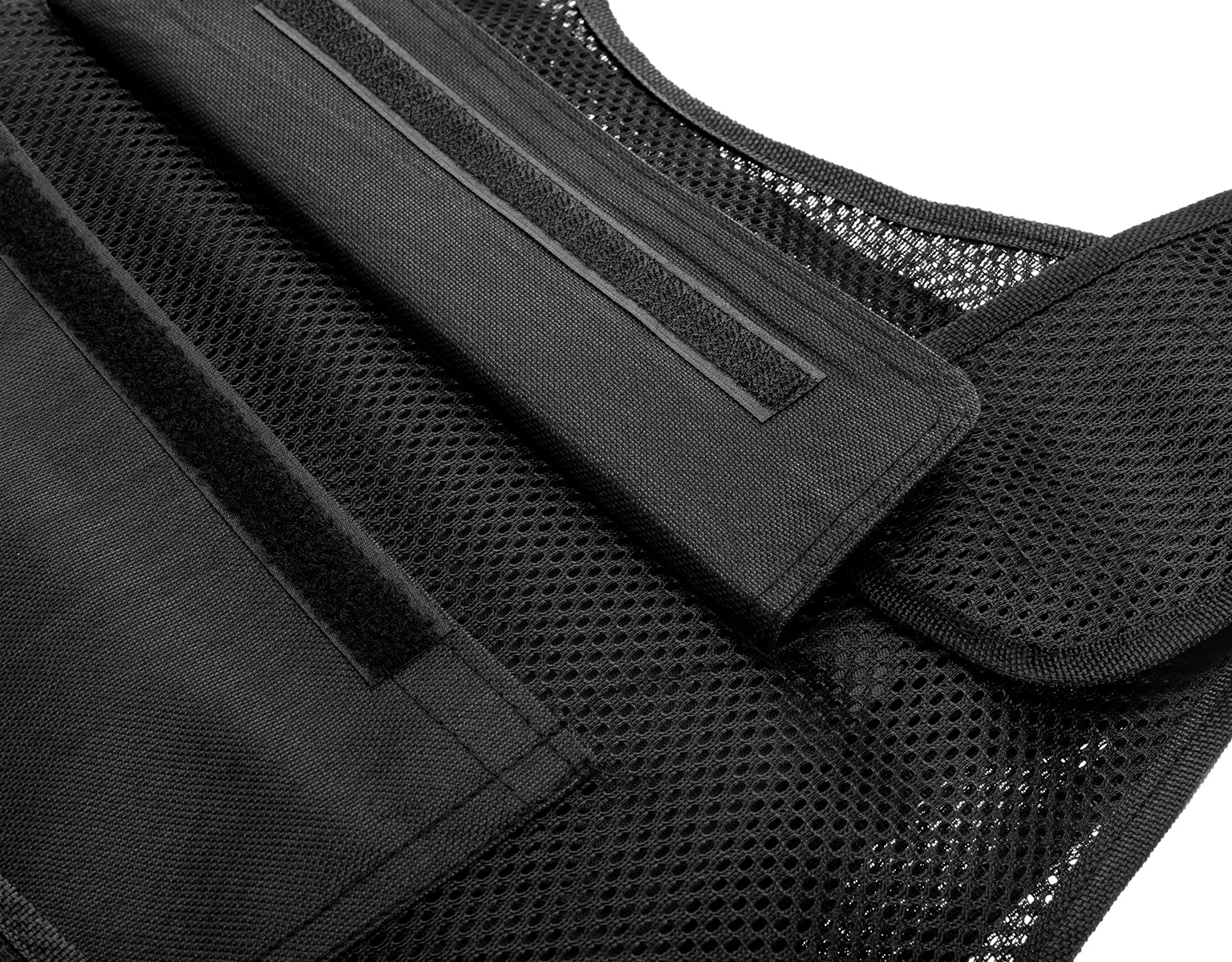 Kamizelka nożoodporna posiada regulowane szelki oraz pas za pomocą solidnych, szerokich rzepów.