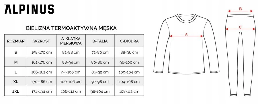 Dane techniczne bielizny termicznej Alpinus :
