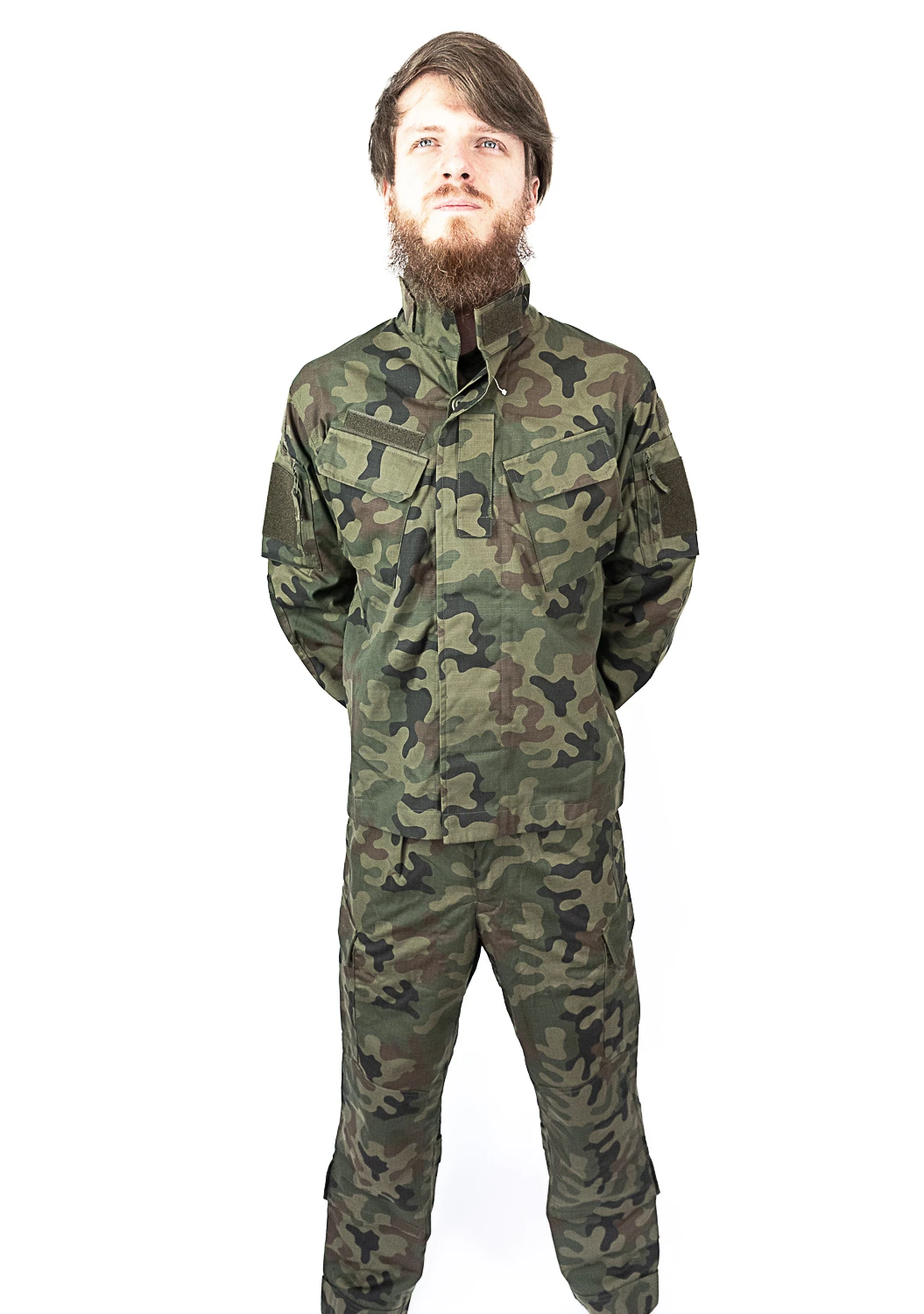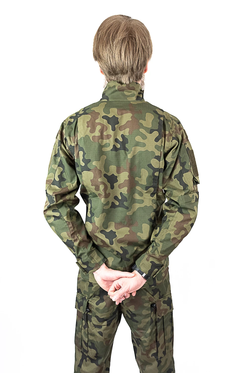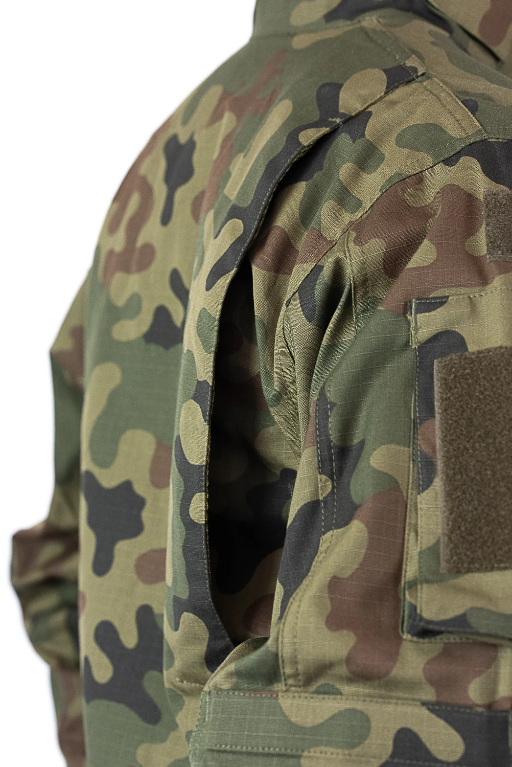 Oryginalny mundur polowy używany przez Wojsko Polskie od 2019 roku. Materiał, z którego został wykonany - US 22/1 posiada w składzie : 50% - bawełnę, 50% poliester. Kamuflaż WZ 93.